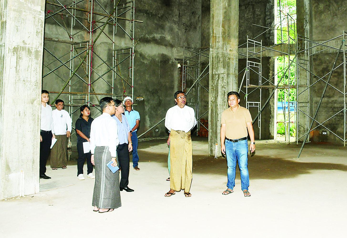 ပြန်ကြားရေးဝန်ကြီးဌာန ဒုတိယဝန်ကြီး ဦးရဲတင့်သည် ယမန်နေ့မွန်းလွဲပိုင်းက ရန်ကုန်မြို့ မင်္ဂလာတောင်ညွန့်မြို့နယ် ဥယျာဉ်ရပ်ကွက် ဗိုလ်မင်းရောင်လမ်းရှိ စာဆိုဗိမာန်သုံးထပ်(RC) အဆောက်အအုံ တည်ဆောက်နေမှုကို ကြည့်ရှုစစ်ဆေးသည်။