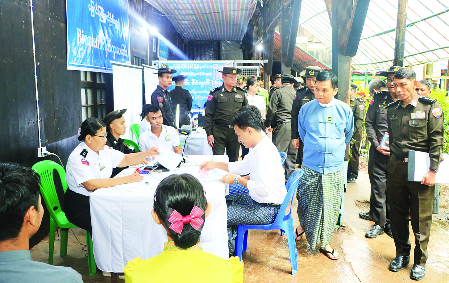 ထိုမှတစ်ဆင့် ပြည်ထောင်စုဝန်ကြီးသည် ဝါးခယ်မမြို့ရှိ လူဝင်မှုကြီးကြပ်ရေးနှင့်ပြည်သူ့အင်အားဝန်ကြီးဌာန မြို့နယ်ဦးစီးမှူးရုံးသို့ သွားရောက်၍ ရုံးဝင်းအတွင်း၌ ဝန်ထမ်းများက ဒေသခံပြည်သူများအား အိမ်ထောင်စုလူဦးရေစာရင်းနှင့် နိုင်ငံသားစိစစ်ရေကတ်ပြား ပျက်စီး/ ပျောက်ဆုံးသွားသည့် ဒေသခံပြည်သူများနှင့် နိုင်ငံသားစိစစ်ရေးကတ်ပြားမရရှိသေးသူ ပြည်သူများအား ပန်းခင်းစီမံချက်အဆင့် (၃) ဖြင့် ဆောင်ရွက်ပေးနေမှု၊ နိုင်ငံသားကတ်ပြားရရှိ ပြီးသူများအား e-ID စနစ်ဖြင့် Biographic/Biometric ကောက်ယူကာ Unique ID နံပါတ် တစ်ပါတည်းဆောင်ရွက်ထုတ်ပေးနေမှုကို လှည့်လည်ကြည့်ရှုအားပေးကာ တာဝန်ရှိသူများအား လုပ်ငန်းလိုအပ်ချက်များ ညှိနှိုင်းဆောင်ရွက်ပေးသည်။