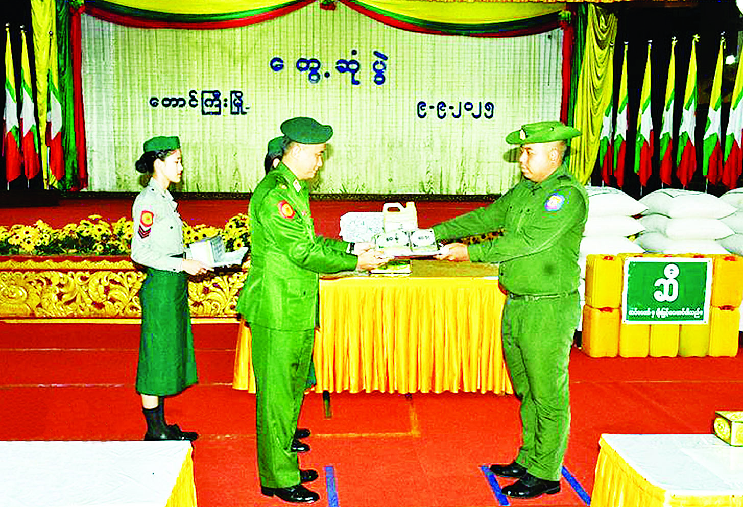 ဦးစွာ တိုင်းမှူးက အမှာစကားပြောကြားပြီး ပြည်သူ့စစ် (ဌာနေ) အဖွဲ့ဝင်များအား ချီးမြှင့်ငွေနှင့် စားသောက်ဖွယ်ရာများ ပေးအပ်ရာ ပြည်သူ့စစ် (ဌာနေ) တပ်ဖွဲ့ဝင်များက အသီးသီးလက်ခံရယူကြသည်။ ထို့နောက် ပြည်သူ့စစ် (ဌာနေ) တပ်ဖွဲ့ဝင်များ၏ တင်ပြချက်များအပေါ် တိုင်းမှူးနှင့် တာဝန်ရှိသူများက လိုအပ်သည်များ ပေါင်းစပ်ညှိနှိုင်းဆောင်ရွက်ပေးပြီး ပြည်သူ့စစ် (ဌာနေ) တပ်ဖွဲ့ဝင်များအား ရင်းရင်းနှီးနှီးလိုက်လံနှုတ်ဆက်ခဲ့ကြောင်း သတင်းရရှိသည်။