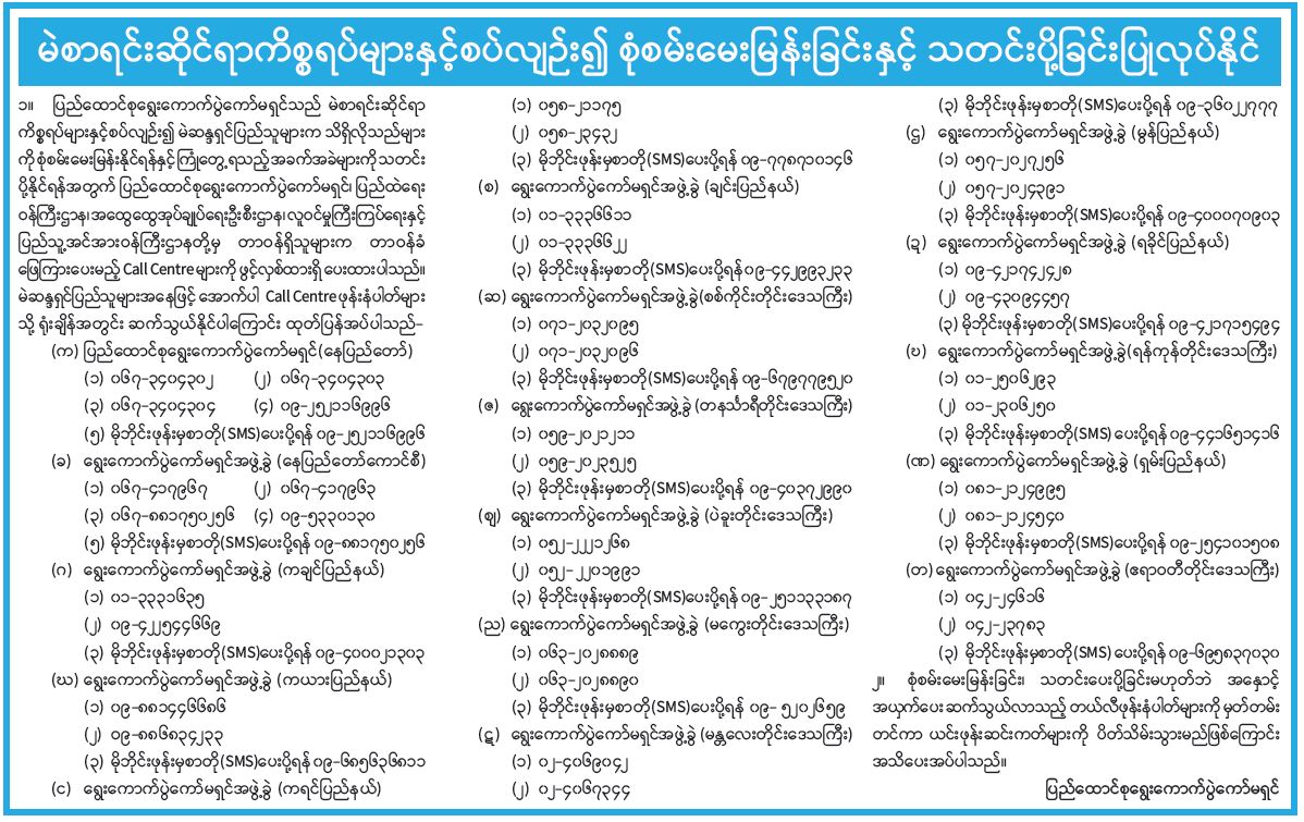 မဲစာရင်းဆိုင်ရာကိစ္စရပ်များနှင့်စပ်လျဉ်း၍ စုံစမ်းမေးမြန်းခြင်းနှင့် သတင်းပို့ခြင်းပြုလုပ်နိုင်