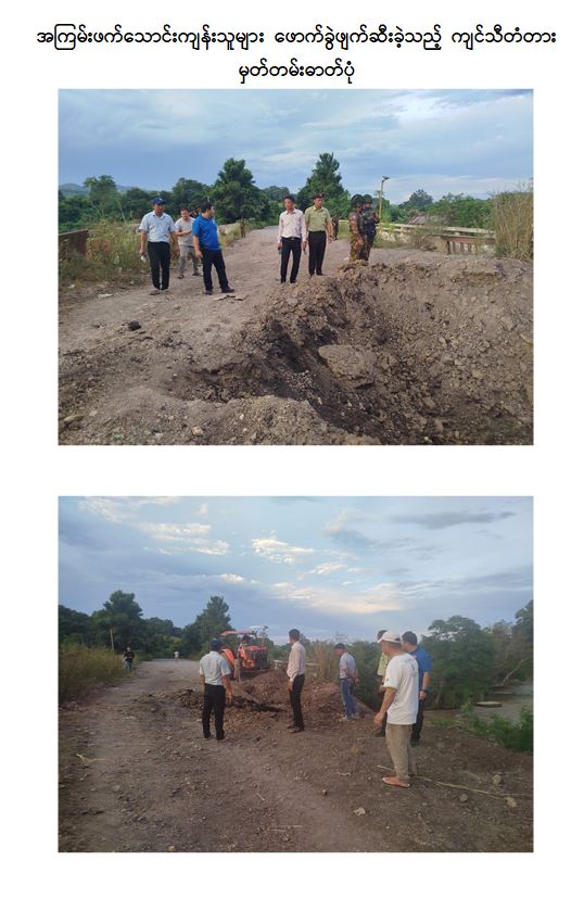 ထိုပြင် အကြမ်းဖက်သောင်းကျန်းသူများသည် တပ်မတော်စစ်ကြောင်းများနှင့် တိုက်ပွဲများဖြစ်ပွားစဉ် ကာလအတွင်း ၎င်းတို့ဆုတ်ခွာထွက်ပြေးရာ လမ်းကြောင်းတစ်လျှောက်ရှိ မြန်မာနိုင်ငံ၏ အထင်ကရအမှတ်အသားနှင့် ကမ္ဘာကျော် ရှေးဟောင်းမီးရထားလမ်းတံတားတစ်စင်းဖြစ်သည့် ဂုတ်ထိပ်တံတား၊ ဂုတ်တွင်းတံတားအပါအဝင် အများပြည်သူ အဓိကသွားလာအသုံးပြုလျက်ရှိသည့် တံတားကြီး/ငယ်များအား ယုတ်မာရိုင်းစိုင်းစွာ မိုင်းထောင်ဖောက်ခွဲဖျက်ဆီးခြင်း၊ လမ်းများပိတ်ဆို့တားဆီးခြင်းများ လုပ်ဆောင်ခဲ့သဖြင့် တပ်မတော်စစ်ကြောင်းများနှင့် ဌာနဆိုင်ရာတာဝန်ရှိသူများက လူအင်အား၊ စက်ယန္တရားများအသုံးပြု၍ ပြန်လည်ပြုပြင်ခြင်းနှင့် ဖယ်ရှားရှင်းလင်းခြင်းလုပ်ငန်းများ ဆောင်ရွက်လျက်ရှိသည်။