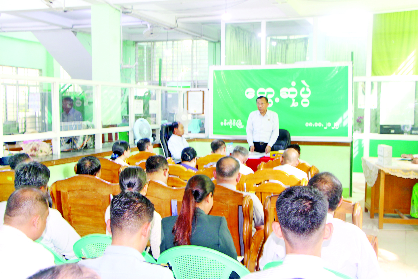 ငလျင်ကြောင့် ရုံးဌာနများ ထိခိုက်ပျက်စီးခဲ့သော်လည်း ဝန်ထမ်းများအနေဖြင့် ရုံးပြန်လည်ပြုပြင် တည်ဆောက်မှုလုပ်ငန်းများကြားမှ ရုံးလုပ်ငန်းများကို အရှိန်အဟုန်မပျက် ကြိုးစားဆောင်ရွက်လျက်ရှိသည့်အတွက် အသိအမှတ်ပြုပါကြောင်း၊ လုပ်ငန်းတိုးတက်မှုအရှိန်ကို ဆက်လက်ထိန်းသိမ်း၍ လျာထားချက်များ ပြည့်မီကျော်လွန်အောင် ကြိုးပမ်းဆောင်ရွက်ပေးကြရန် တိုက်တွန်းလိုပါကြောင်း၊ ငလျင်ဒဏ်ကြောင့် ပျက်စီးခဲ့သောရုံးအဆောက်အအုံများကို အမြန်ဆုံး အရည်အသွေးပြည့်ဝစွာ ပြန်လည်ပြင်ဆင်ကြရန်လိုအပ်ကြောင်း၊ ဆက်လက်၍လည်း ရုံးလုပ်ငန်းများကို အရှိန်အဟုန်မပျက် ကြိုးပမ်းဆောင်ရွက်သွားကြစေလိုကြောင်း မှာကြားသည်။