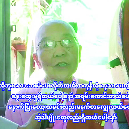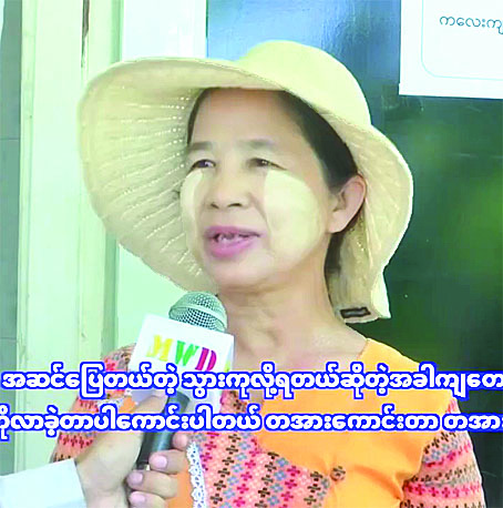 ၃။ ယောက်မက ခွဲရပါတယ်။ ကျွန်မကိုကျတော့ မြို့မှာသွားပြီး စမ်းသပ်ပြီးတော့ မျက်မှန်တပ်လို့ ပြောပါတယ်။ အုပ်ချုပ်ရေးမှူးက ကြေညာထားတဲ့အခါကျတော့ ကျွန်မအဆင်ပြေတယ်တဲ့။ သွားကုလို့ရတယ်ဆိုတဲ့ အခါကျတော့ ကျွန်မလည်း ဒီကိုလာခဲ့တာပါ။ စားတာသောက်တာ ကျွေးတာမွေးတာ အကုန်ကောင်းတယ်။ ဆက်ဆံမှုတွေပါ အကုန်ကောင်းပါတယ်။ ကျေးဇူးတင်ပါတယ်။ ဗိုလ်ကြီးတို့ကလည်း ဆုတောင်းပေးတယ်။ ကျေးဇူးတင်တဲ့အကြောင်းလည်း ပြောခဲ့ပါတယ်။ ဆရာဝန်ကြီးတွေလည်း ကောင်းပါတယ်။ ကုသပေးသူလည်းကောင်းပါတယ်။ အားလုံးလည်းကောင်းပါတယ်။ နှစ်စဉ်နှစ်တိုင်းလည်း ဒီလိုပဲလာနိုင်ပါစေလို့ အမြဲတမ်းလည်း ဖိတ်ခေါ်ပါတယ်။