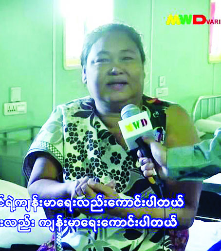 ၁။      ဒီမှာ အခုလာပြတာသွားရယ် ၊ နှလုံးသွေးကြောကျဉ်း တာရယ်လာပြတာပါ။ အရင်လည်း ဒီလိုပြဖူးပါတယ်။ ဒီဆရာတွေနဲ့ပဲ ECG ဆွဲဖူးပါတယ်။ ECG ဆွဲပြီးသွားလို့ရှိရင် သူကလိုအပ် တာလေးတွေကို ဆေးလည်းပေး တယ်၊ လိုအပ်တာလေးတွေကိုလည်း ညွှန်ကြားပေးပါတယ်။ ဒီတစ်ခေါက်က သွားအဓိကပေါ့၊ ဒါပေမယ့် နှလုံးကလည်းပြန်ပြန် အောင့်တဲ့အတွက် အဲဒါလာပြတာပါ။ ကျောင်းတစ်ဖက်နဲ့ဆိုတော့ အခုဒီလိုမျိုးလာပြီးတော့ ကုသပေးတဲ့အချိန်နဲ့ တိုက်ဆိုင်တော့ ကျေးဇူးတင်ပါတယ်။ ဒါကြောင့်မို့လည်း လှိုက်လှိုက်လှဲလှဲကြိုဆိုတာ၊ ကျွန်မတို့ အထက်တန်းကျောင်း ကလေးတွေက အကလေးတွေနဲ့လည်း ကြိုဆိုကြပါတယ်။ ဆရာမတွေလည်း ပန်းစည်း ကမ်းပြီးတော့ ကြိုဆိုကြတယ်။ ကလေးအားလုံးလည်း ပျော်ပျော်ရွှင်ရွှင် တက်တက်ကြွကြွနဲ့ ပါဝင်ကြပါတယ်။