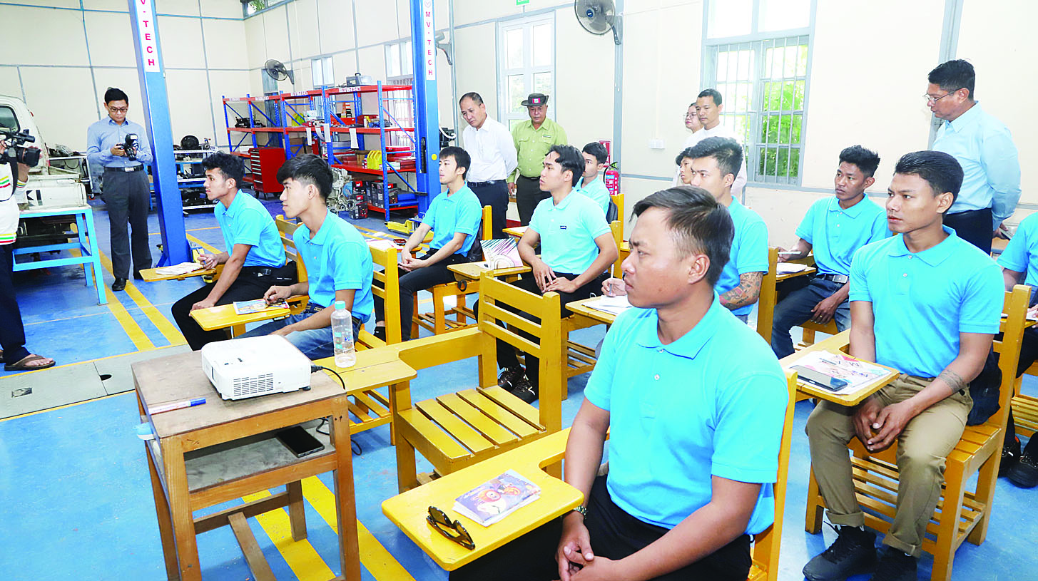 ပြည်ထောင်စုဝန်ကြီး ဦးအောင်ကျော်ဟိုး မော်တော်ယာဉ်စက်ပြင်သင်တန်းပို့ချနေမှု ကြည့်ရှုအားပေး တာမွေအလုပ်သမားဆေးရုံကြီးနှင့် ပင်မဆေးသိုလှောင်ရေးဌာန ကြည့်ရှုစစ်ဆေး