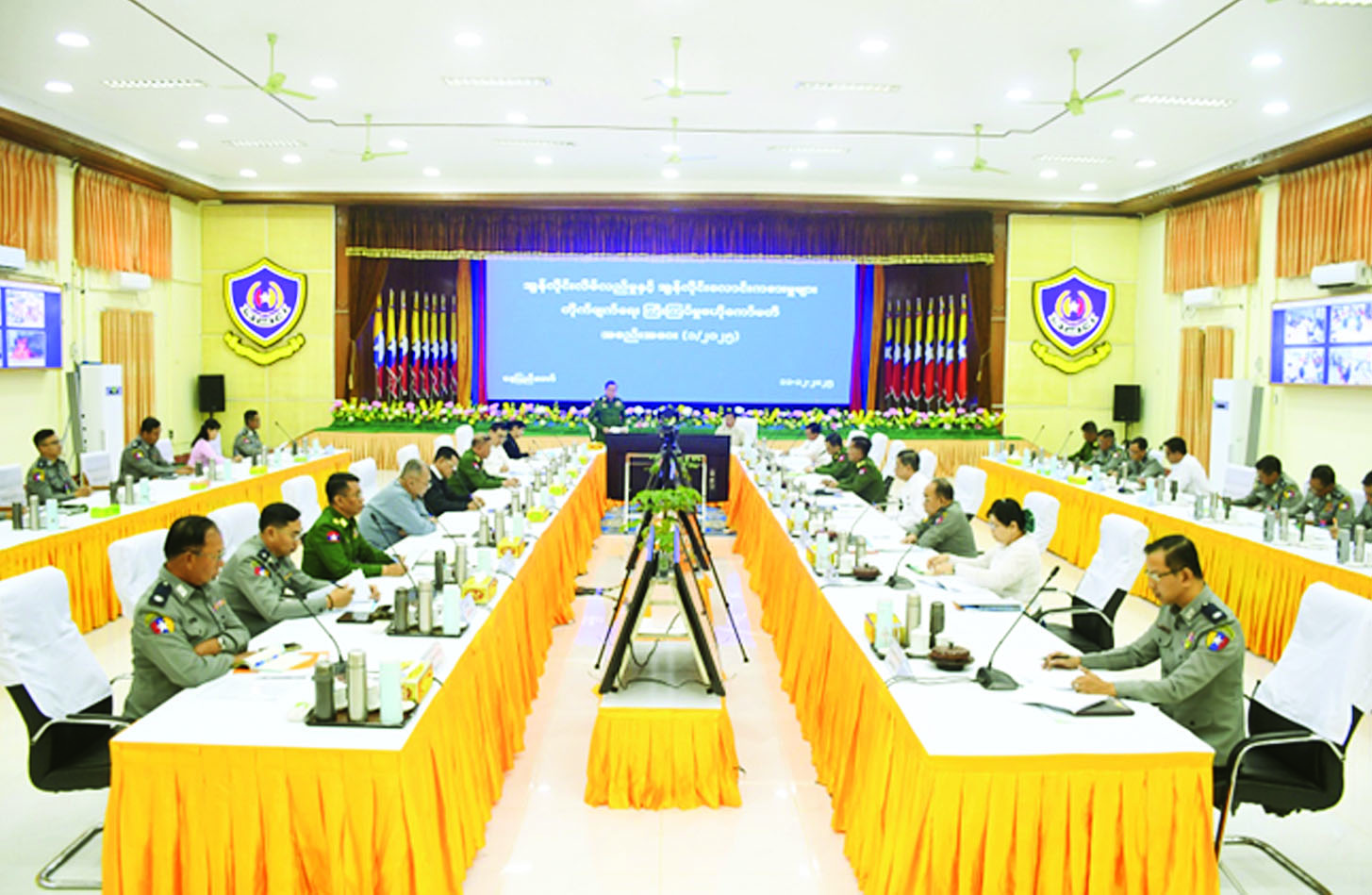 အွန်လိုင်းလိမ်လည်မှုနှင့် အွန်လိုင်းလောင်းကစားမှုများ တိုက်ဖျက်ရေးကြီးကြပ်မှုဗဟိုကော်မတီအစည်းအဝေး (၁/၂၀၂၅) ကို ယနေ့မွန်းလွဲပိုင်းတွင် နေပြည်တော်ရှိ မြန်မာနိုင်ငံရဲတပ်ဖွဲ့ဌာနချုပ် အရိန္ဒမာခန်းမ၌ကျင်းပရာ အွန်လိုင်းလိမ်လည်မှုနှင့် အွန်လိုင်းလောင်းကစားမှုများ တိုက်ဖျက်ရေးကြီးကြပ်မှုဗဟိုကော်မတီဥက္ကဋ္ဌ ပြည်ထဲရေးဝန်ကြီးဌာန ပြည်ထောင်စုဝန်ကြီး ဒုတိယဗိုလ်ချုပ်ကြီး ထွန်းထွန်းနောင်၊ ဒုတိယဥက္ကဋ္ဌ(၁) နိုင်ငံခြားရေးဝန်ကြီးဌာန ပြည်ထောင်စုဝန်ကြီး ဦးသန်းဆွေ၊ ဗဟိုကော်မတီအဖွဲ့ဝင်များ၊ အတွင်းရေးမှူးနှင့် တွဲဖက်အတွင်းရေးမှူးများတက်ရောက်ကြပြီး ဗဟိုကော်မတီအဖွဲ့ဝင်များဖြစ်ကြသည့် တိုင်းဒေသကြီး၊ ပြည်နယ်များမှ ဝန်ကြီးချုပ်များနှင့် တိုင်းစစ်ဌာနချုပ် တိုင်းမှူးများက အွန်လိုင်းဖြင့် တက်ရောက်ကြသည်။