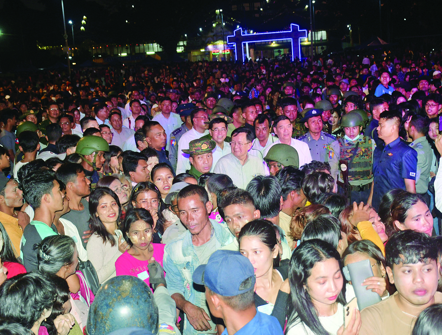 ဆက်လက်၍ အမှုဆောင်ချုပ်နှင့်အဖွဲ့ဝင်များသည် ဝင်္ကာပါကွင်း၌ (၅၁)နှစ်မြောက် ရခိုင်ပြည်နယ်နေ့ အထိမ်းအမှတ် ဂီတဖျော်ဖြေပွဲနှင့် စတုဒိသာကျွေးမွေးနေမှုကို လှည့်လည်ကြည့်ရှုအားပေးပြီး ဒေသခံပြည်သူများအား ရင်းရင်းနှီးနှီး တွေ့ဆုံနှုတ်ဆက် အားပေးစကားပြောကြားသည်။
