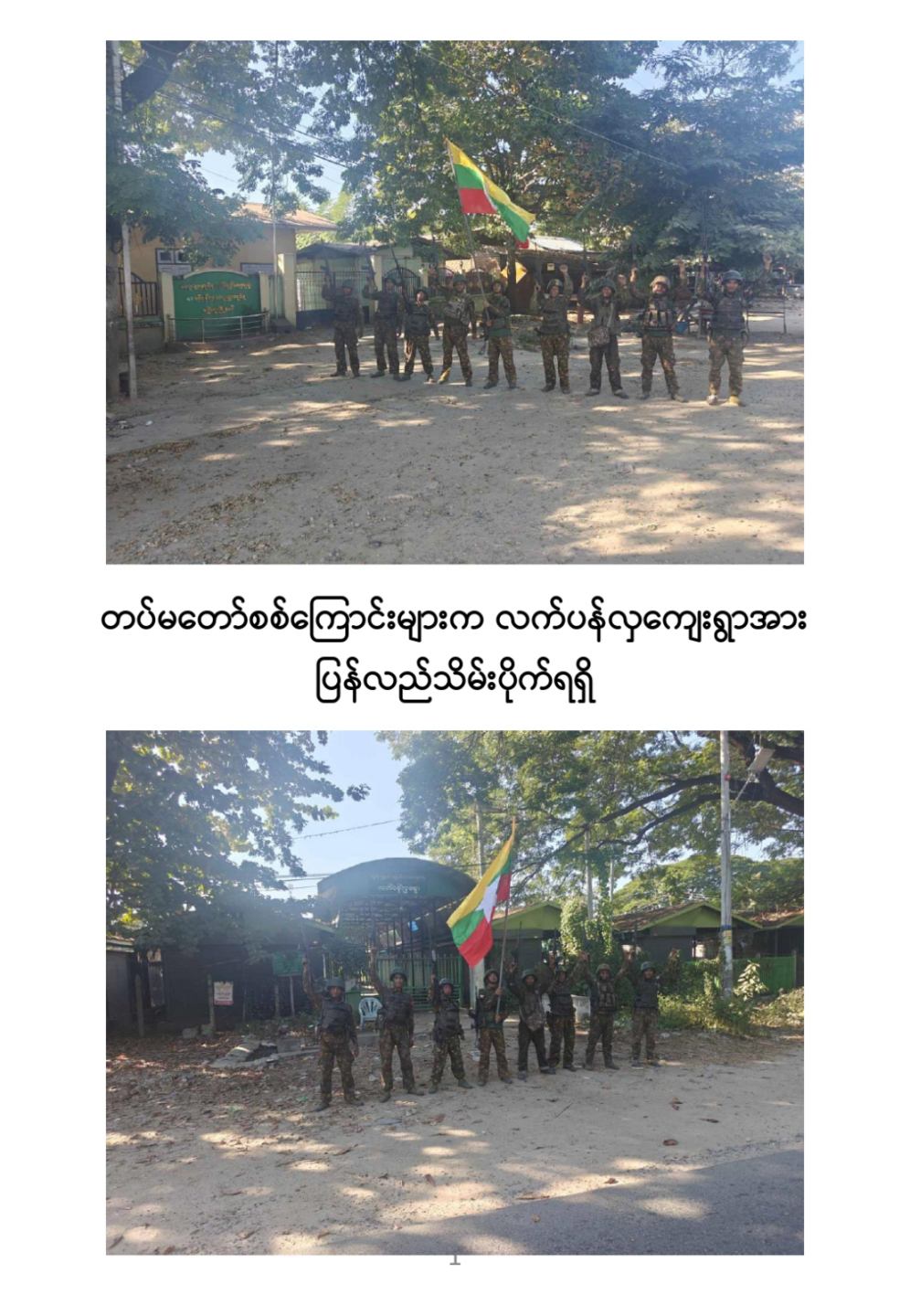 ထို့ကြောင့် တပ်မတော်စစ်ကြောင်းများက အဆိုပါဒေသများ တည်ငြိမ်အေးချမ်းရေး၊ ယာယီနေရပ်စွန့်ခွာပြည်သူများ ၎င်းတို့၏နေရပ်သို့ ပြန်လည်အခြေချနေထိုင်နိုင်ရေး၊ စက်ရုံ၊ အလုပ်ရုံများ ပြန်လည်ဖွင့်လှစ်နိုင်ရေးနှင့် နိုင်ငံစီးပွားတိုးတက်ရေး အထောက်အကူပြုသည့် မြေပေါ်/မြေအောက်သယံဇာတများ ပြန်လည်ဆောင်ရွက်နိုင်ရေးတို့အတွက် လိုအပ်သည့် ပြင်ဆင်စုဖွဲ့မှုများဆောင်ရွက်ပြီး အကြမ်းဖက်ချေမှုန်းမှုစစ်ဆင်ရေး (Counter-Terrorism Operation)ကို ဆောင်ရွက်ခဲ့ရာ အကြမ်းဖက်သောင်းကျန်းသူပူးပေါင်းအဖွဲ့များ ယာယီစိုးမိုးထားသည့် မန္တလေးတိုင်းဒေသကြီး၊ သပိတ်ကျင်းမြို့နှင့် ၎င်းဒေသတစ်ဝိုက်အား ၂၀၂၅ ခုနှစ်၊ ဇူလိုင်လ ၂၃ ရက်တွင်လည်းကောင်း၊ မတ္တရာမြို့နယ်ရှိ ဖယောင်းတောင် သတ္တုတွင်းဒေသအား ဩဂုတ်လ ၂၄ ရက်တွင်လည်းကောင်း၊ အယ်လ်ဖာ ဘိလပ်မြေစက်ရုံတစ်ဝိုက်အား ဩဂုတ်လ ၂၈ ရက်တွင်လည်းကောင်း၊ ဆည်တော်ကြီးကျေးရွာနှင့် ရေလှောင်တမံအား နိုဝင်ဘာလ ၇ ရက်တွင်လည်းကောင်း အဝေးရောက်ဒေသခံပြည်သူများ၏ စစ်ရေးသတင်းပေးကူညီမှုများဖြင့် တစ်နေရာပြီး တစ်နေရာအား ပြန်လည်သိမ်းပိုက်ထိန်းချုပ်နိုင်ခဲ့သည်။