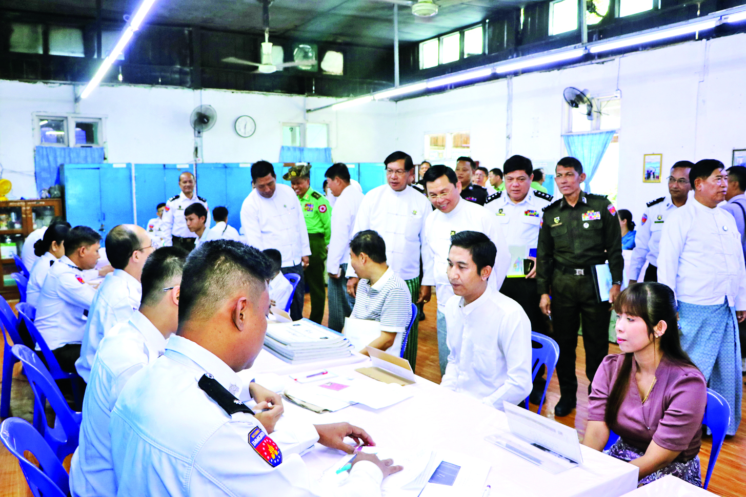 ထို့နောက် ပြည်ထောင်စုဝန်ကြီးနှင့် တိုင်းဒေသကြီးဝန်ကြီးချုပ်တို့သည် ဝန်ထမ်းများက ဒေသခံပြည်သူများကို ပန်းခင်းစီမံချက်အဆင့်(၃)ဖြင့် အိမ်ထောင်စု လူဦးရေစာရင်းနှင့် နိုင်ငံသားစိစစ်ရေးကတ် ထုတ်ပေးနိုင်ရေးအတွက် လုပ်ထုံးလုပ်နည်းနှင့်အညီစိစစ်၍ One Stop Service ဖြင့် လုပ်ငန်းစဉ် အဆင့်ဆင့်ဆောင်ရွက်နေမှုနှင့် နိုင်ငံသားစိစစ်ရေးကတ် ရရှိပြီးသူများအား e-ID စနစ်ဖြင့် Biographic/ Biometric ကောက်ယူကာ Unique ID နံပါတ်တစ်ပါတည်း ဆောင်ရွက်ထုတ်ပေးနေမှုအခြေအနေကို လှည့်လည်ကြည့်ရှုအားပေးသည်။