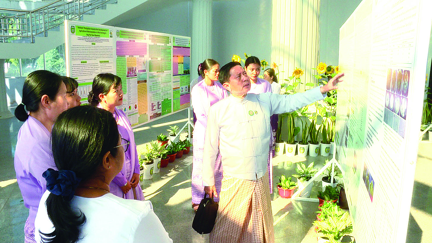စာတမ်းဖတ်ပွဲနှင့် ပိုစတာပြပွဲတွင် ဒုတိယဝန်ကြီး က ၁၉၂၄ ခုနှစ်တွင် စိုက်ပျိုးရေး ကောလိပ်နှင့် သုတေသနဗိမာန်အဖြစ် ဖွင့်လှစ်ခဲ့ပြီး စိုက်ပျိုးရေးပညာရပ် သင်ကြားသင်ယူမှုနှင့် သုတေသနဖွံ့ဖြိုးမှုတို့ တစ်ပြိုင်တည်း စတင်ခဲ့သည့်နည်းတူ တက္ကသိုလ်နှင့် သုတေသနတို့သည် ခွဲခြားမရသည်မှာ အထင်အရှားဖြစ်ပါကြောင်း၊ ရေမြေရာသီဥတု၊ ခေတ်စနစ်နှင့် လိုက်လျောညီထွေသော စိုက်ပျိုးဖြစ်ထွန်းမှုအတွက် စမ်းသပ်လေ့လာမှုများ၊ သုတေသနများကို စနစ်တကျ လုပ်ဆောင်နိုင်မှသာ စိုက်ပျိုးထုတ်လုပ်သူများအတွက် ထိရောက်အကျိုးရှိသည့် နည်းပညာများ၊ သီးနှံစိုက်ပျိုး ထုတ်လုပ်မှုဆိုင်ရာ မှန်ကန်သည့် အကြံပြုချက်များ ရရှိစေမည်ဖြစ်ပြီး သွင်းအားစု နှင့် အရင်းအမြစ်များကိုလည်း အလေအလွင့်မရှိ အသုံးပြုနိုင်စေမည်ဖြစ်ကြောင်း။