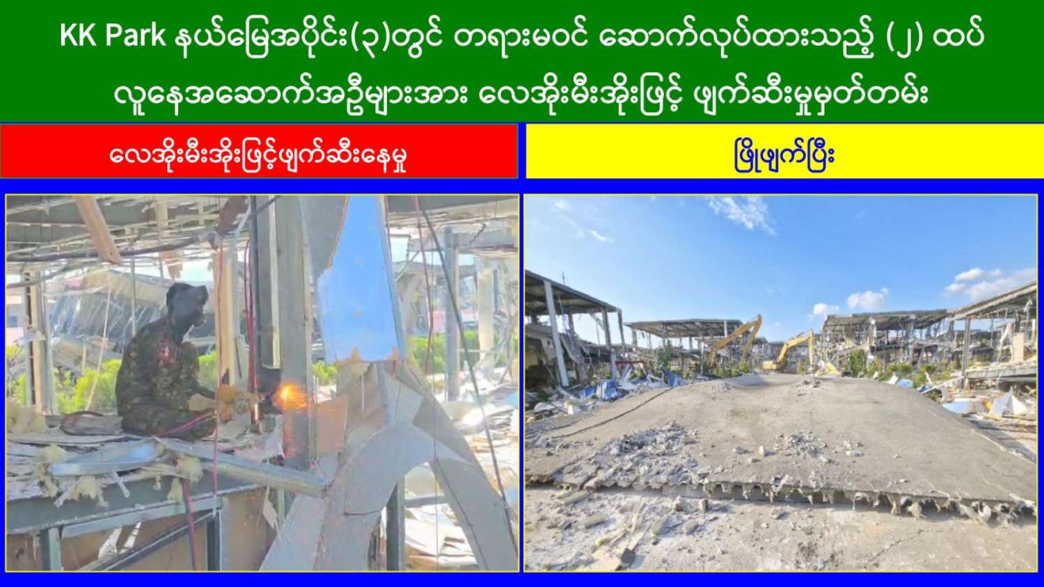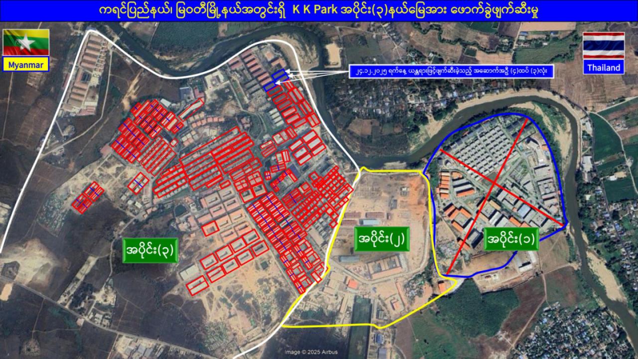 KK Park နယ်မြေအတွင်း အွန်လိုင်းလိမ်လည်လောင်းကစားမှု ကျူးလွန်ရာတွင် အသုံးပြုသည့် တရားမဝင်အဆောက်အအုံ ၄၉၄ လုံးကို စနစ်တကျဖြိုချဖျက်ဆီးပြီးစီး၊ ရွှေကုက္ကိုလ်နယ်မြေအတွင်း အွန်လိုင်းလိမ်လည်လောင်းကစားမှုကျူးလွန်ရာတွင် အသုံးပြုသည့် အဆောက်အအုံများအား ထပ်မံချိပ်ပိတ်သိမ်းဆည်း