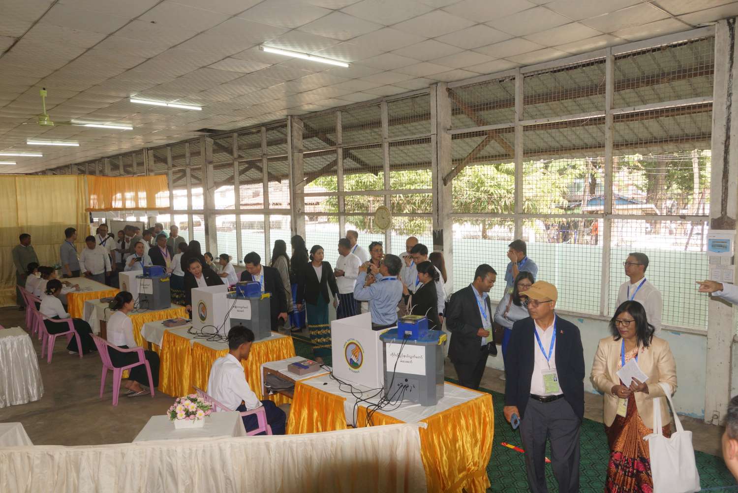 ရန်ကုန်တိုင်းဒေသကြီးအတွင်းရှိ ဒဂုံမြို့နယ် လမ်းမတော်မြို့နယ် သာကေတမြို့နယ်တို့တွင် ၂၀၂၅ ခုနှစ် ပါတီစုံဒီမိုကရေစီအထွေထွေ ရွေးကောက်ပွဲ အပိုင်း(၃)ကို ဇန်နဝါရီ (၂၅)ရက် နံနက်(၆)နာရီကစတင်ကျင်းပလျက်ရှိရာ နိုင်ငံတကာရွေးကောက်ပွဲစောင့်ကြည့်လေ့လာရေးအဖွဲ့များ လာရောက်လေ့လာကြသည်။