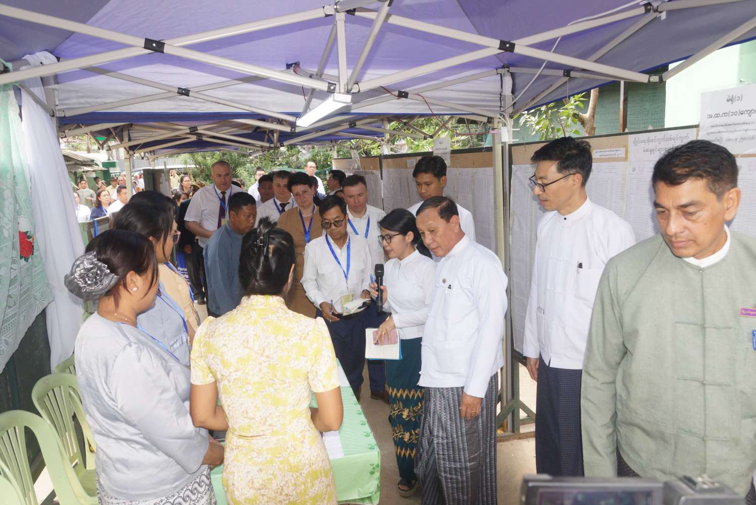 နိုင်ငံတကာရွေးကောက်ပွဲ စောင့်ကြည့်လေ့လာရေးအဖွဲ့များဖြစ်သည့် ဘယ်လာရုစ်သမ္မတနိုင်ငံမှ ကိုယ်စားလှယ်အဖွဲ့၊ ကမ္ဘောဒီးယားနိုင်ငံရွေးကောက်ပွဲကော်မရှင်မှကိုယ်စားလှယ်အဖွဲ့၊ နီပေါနိုင်ငံရွေးကောက်ပွဲကော်မရှင်မှကိုယ်စားလှယ်အဖွဲ့၊ အင်ဒိုနီးရှားနိုင်ငံ ရွေးကောက်ပွဲကော်မရှင်မှကိုယ်စားလှယ်အဖွဲ့၊ ဗီယက်နမ်ဆိုရှယ်လစ်သမ္မတနိုင်ငံမှကိုယ်စားလှယ်အဖွဲ့၊ နီကာရာဂွါနိုင်ငံမှ ကိုယ်စားလှယ်အဖွဲ့၊ အိန္ဒိယနိုင်ငံမှကိုယ်စားလှယ်နှင့် International Conference of Asian Political Parties(ICAPP)အဖွဲ့မှ ကိုယ်စားလှယ်များသည် ပြည်ထောင်စုရွေးကောက်ပွဲကော်မရှင်ရုံးမှ တာဝန်ရှိသူများ၊ ရန်ကုန်တိုင်းဒေသကြီး ရွေးကောက်ပွဲကော်မရှင်အဖွဲ့ခွဲမှ တာဝန်ရှိသူများက ဒဂုံမြို့နယ်ပြည်လမ်း(အရှေ့)ရပ်ကွက်ရှိမဲရုံအမှတ်(၂)၊ လမ်းမတော်မြို့နယ်အမှတ်(၈)ရပ်ကွက်ရှိမဲရုံအမှတ်(၁)၊ သာကေတမြို့နယ် အမှတ်(၇)ရပ်ကွက်(အနောက်)ရှိ မဲရုံအမှတ်(၁)၊ မဲရုံအမှတ်(၂)နှင့် မဲရုံအမှတ်(၃)များသို့ရောက်ရှိပြီး မဲဆန္ဒရှင်ပြည်သူများ လွတ်လပ်စွာဆန္ဒမဲပေးနေမှု၊ မဲရုံတာဝန်ရှိသူများမှ ပြည်သူများအဆင်ပြေစွာ ဆန္ဒမဲပေးနိုင်ရေး ကူညီဆောင်ရွက်ပေးနေမှုများကို လေ့လာကြည့်ရှုပြီး မဲရုံတာဝန်ထမ်းဆောင်ကြသူများနှင့် လွတ်လပ်စွာဆန္ဒမဲလာရောက်ပေးလျက်ရှိသော ပြည်သူများအားတွေ့ဆုံ၍ သိရှိလိုသည်များကို ဆွေးနွေးမေးမြန်းခဲ့ကြကြောင်းသိရသည်။