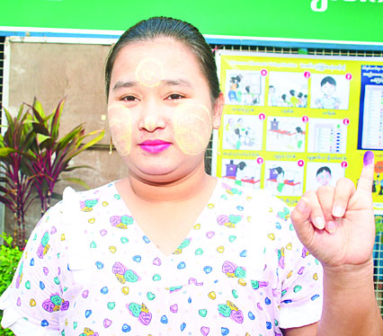 ကျွန်မမျက်စိဆေးရုံမှာ အလုပ်လုပ် နေပါတယ်။ နိုင်ငံသားလူငယ်တစ်ဦးအနေနဲ့ ပထမဆုံးမဲပေးရတာဖြစ်ပါတယ်။ လစာတွေတိုးဖို့၊ ကုန်ဈေးနှုန်းလျော့ကျဖို့၊ အလုပ်အကိုင်တွေအဆင်ပြေဖို့ စွမ်းဆောင်နိုင်မယ့်ပါတီကို အပြည့်အဝမဲပေးခဲ့ပါတယ်။ ပြီးတော့ ဝန်ထမ်းတွေ နေထိုင်၊ သွားလာရေးအဆင်ပြေအောင် ဆောင်ရွက်ပေးနိုင်မယ်လို့ထင်တဲ့ ပါတီကို မဲပေးခဲ့တာပါ။ နိုင်ငံကို အေးချမ်းသာယာစေချင်တယ်။ ဝန်ထမ်းတွေရဲ့ ဘဝတိုးတက်မြင့်မားအောင် စီမံဆောင်ရွက်ပေးနိုင်မယ်လို့ မျှော်လင့်ထားတဲ့ ကိုယ်စားလှယ်လောင်းကို အားပါးတရမဲပေးခဲ့တာဖြစ်တဲ့အတွက် ကျွန်မတို့ လူငယ်ဝန်ထမ်းတွေ ဘဝနောင်ရေးစိတ်အေးရမယ်လို့ ထင်ပါတယ်။