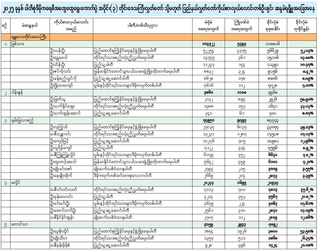 ၂၀၂၅ ခုနှစ် ပါတီစုံဒီမိုကရေစီအထွေထွေရွေးကောက်ပွဲ အပိုင်း(၃) တိုင်းဒေသကြီးလွှတ်တော် သို့မဟုတ် ပြည်နယ်လွှတ်တော်ကိုယ်စားလှယ်လောင်းတစ်ဦးချင်း ဆန္ဒမဲရရှိမှုအခြေအနေ 02/01/2026