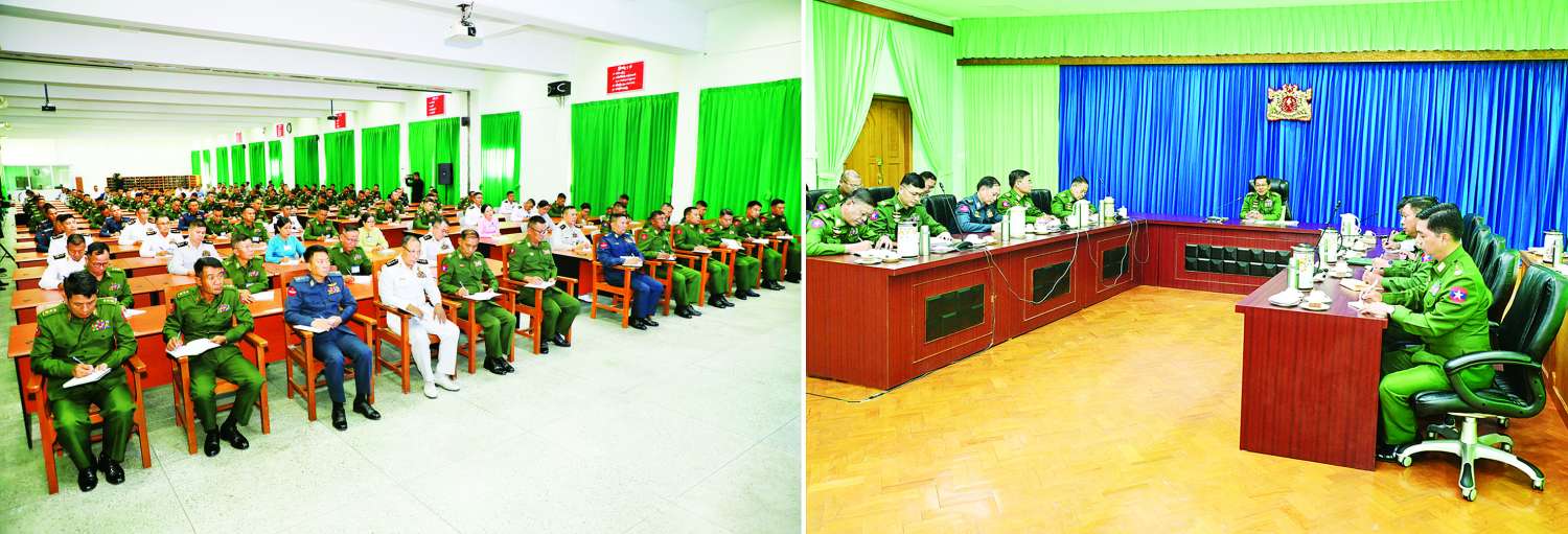 နိုင်ငံတော်လုံခြုံရေးနှင့်အေးချမ်းသာယာရေးကော်မရှင်ဥက္ကဋ္ဌ တပ်မတော်ကာကွယ်ရေးဦးစီးချုပ် ဗိုလ်ချုပ်မှူးကြီး မင်းအောင်လှိုင်သည် ယနေ့မွန်းလွဲပိုင်းတွင် နိုင်ငံတော်ကာကွယ်ရေးတက္ကသိုလ်မှ နည်းပြအရာရှိကြီးများနှင့် သင်တန်းသားအရာရှိကြီးများအား Video Conferencing ဖြင့် အမှာစကားပြောကြားသည်။
