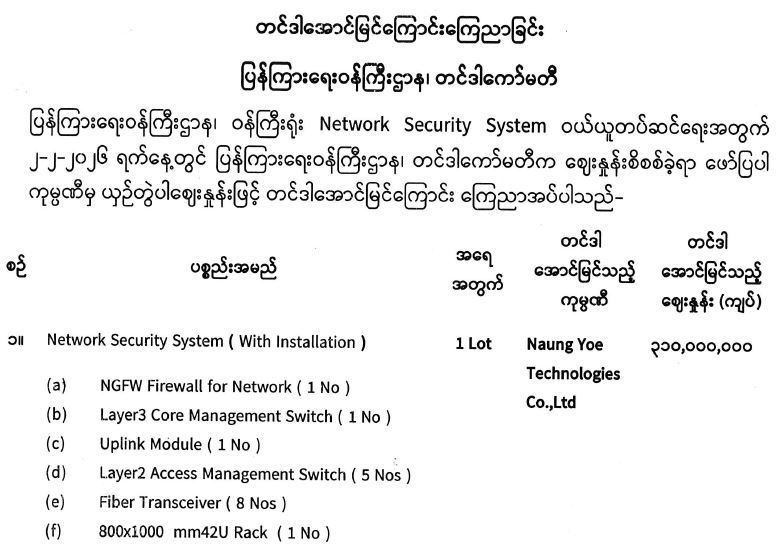 ဦးစီးဌာနနှင့် လုပ်ငန်းများ၏ ကြေညာချက်များ