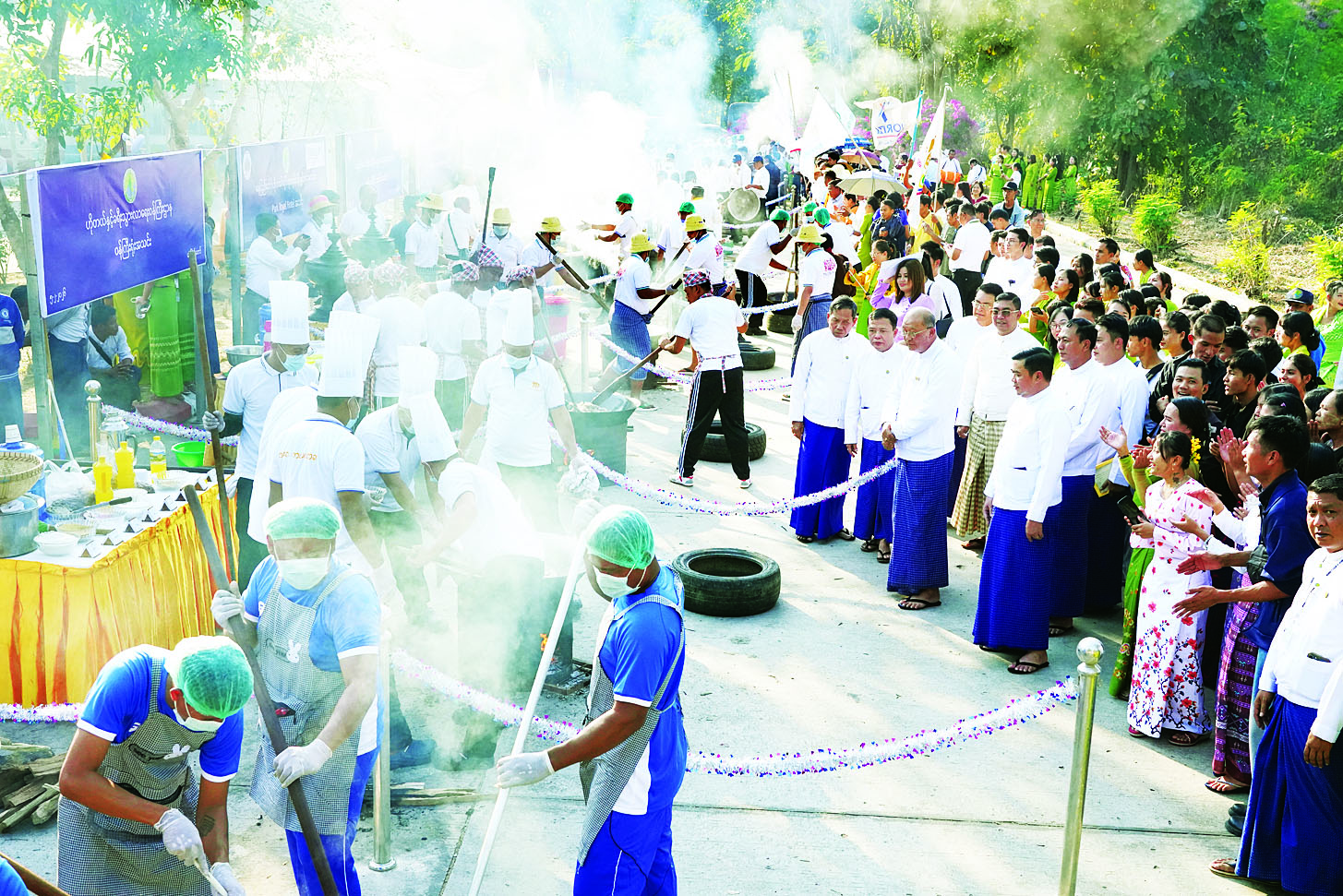 ထို့နောက် ပြည်ထောင်စုဝန်ကြီး၊ ဒုတိယဝန်ကြီးနှင့် တာဝန်ရှိသူများသည် ပြိုင်ပွဲဝင်အသင်းများ၏ အသင်းအလိုက် တပျော်တပါး ထမနဲထိုးယှဉ်ပြိုင်နေမှုကို လိုက်လံကြည့်ရှု အားပေးကြသည်။