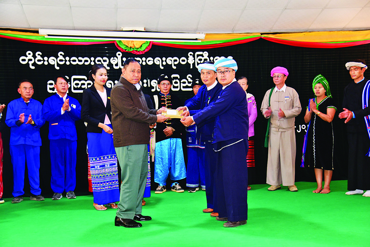 ယင်းနောက် ပြည်ထောင်စုဝန်ကြီးနှင့် ပြည်နယ်ဝန်ကြီးချုပ်တို့က တိုင်းရင်းသားစာပေနှင့် ယဉ်ကျေးမှုအဖွဲ့များအား ချီးမြှင့်ငွေများပေးအပ်ပြီး ဝန်ထမ်းများအတွက် ထောက်ပံ့ငွေပေးအပ်သည်။