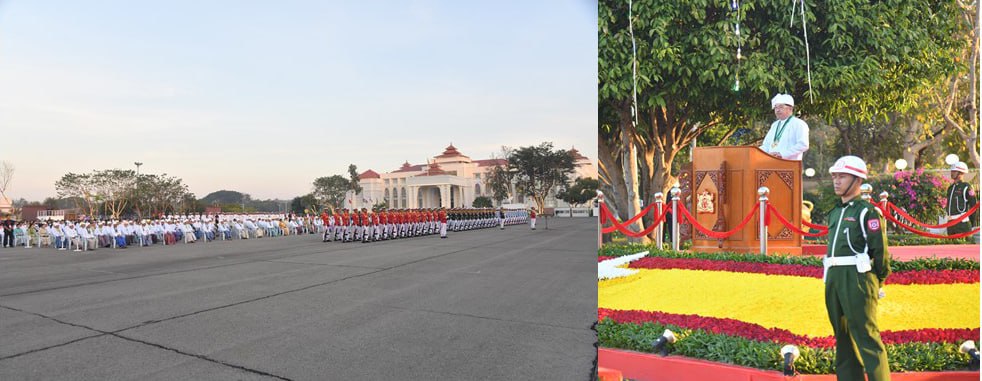 ၂၀၂၆ ခုနှစ်၊ (၇၉) နှစ်မြောက် ပြည်ထောင်စုနေ့ နိုင်ငံတော်အလံတင်အခမ်းအနားနှင့် နိုင်ငံတော်အလံအလေးပြုပွဲအခမ်းအနားကို ယနေ့နံနက်ပိုင်းတွင် နေပြည်တော်ရှိမြို့တော်ခန်းမရှေ့ ရင်ပြင်၌ ကျင်းပပြုလုပ်သည်။