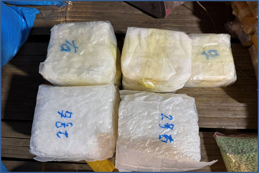ရှမ်းပြည်နယ်(အရှေ့ပိုင်း)၊ တာချီလိတ်မြို့၏ အနောက်မြောက်ဘက် ၃၀ ကီလိုမီတာခန့်အကွာ၌ မူးယစ်ဆေးဝါးများထုတ်လုပ်နေကြောင်း သတင်းအရ လုံခြုံရေးတပ်ဖွဲ့ ဝင်များပါဝင်သောပူးပေါင်းအဖွဲ့က နယ်မြေရှင်းလင်းခြင်းများ သွားရောက်ဆောင်ရွက်ရာ ဖေဖော်ဝါရီ ၂၄ ရက် မွန်းလွဲ ၂ နာရီခန့်တွင် မိုင်းဆတ်မြို့နယ်၊ မိုင်းခုတ်မြို့၏ အရှေ့တောင်ဘက် ၁၉ ကီလိုမီတာ (ဝမ်လုံးကျေးရွာ၏ တောင်ဘက် ၈ ကီလိုမီတာခန့်) အကွာနေရာ၌ မူးယစ်ဆေးဝါးများနှင့် မူးယစ်ဆေးဝါးချက်လုပ်ရာတွင် အသုံးပြုသည့် ပစ္စည်းများဖြစ်သော Promethazine တံဆိပ်ပါ ချောင်းဆိုးပျောက်ဆေးရည် ၁၀၀ ဘူး (၅၀ ဘူးစီပါ ၂ ဖာ)၊ Food Colour တံဆိပ်ပါ အပြာရောင်ဆေးဘူးအကြီး ၁၈ ဘူးနှင့် ဘူးအသေး ၄၁ ဘူး၊ စိစစ်ဆဲဆေးရည်ပုလင်းအသေး ၅၀၀ လုံး၊ မျောက်ခေါင်း တံဆိပ်ပါအနံ့ဆေးရည် ၁၅ ဖာ (တစ်ဖာလျှင် ဘူး ၂၀ ခန့်)၊ စိစစ်ဆဲအဖြူရောင်အမှုန့် ဆာလာအိတ် တစ်ဝက်ခန့်စီပါ ၆ အိတ်၊ ဘိန်းမည်း ၃ ထုတ်၊ ဘိန်းဖြူဘလောက်တုံး ၁ တုံး၊ စိစစ်ဆဲ အနက်ရောင် အထုတ် ၁ ထုတ်၊ အဖြူရောင်ပုံဆောင်ခဲ ၁ ကီလိုဂရမ်စီပါ ၉ ထုတ်၊ တိပ်ဝါများပိတ်ထားသည့် WY ဆေးပြား ၆၀၀၀ ပြားခန့်ပါ ၁၂ စည်း၊ ၉၉၉ တံဆိပ်ပါ တိပ်ဝါပတ်လျက် WY ဆေးပြား ၁၀၀၀၀ ခန့်ပါ ၁၀ စည်း၊ ထုတ်ပိုးရခြင်းမရှိသေးသည့် WY ဆေးပြား ဆာလာအိတ် တစ်ဝက်ခန့်စီပါ ၁၂ အိတ်၊ WY ဆာလာအိတ် တစ်ဝက်ခန့်စီထည့်ထားသည့် ဆေးပြားထုတ်လုပ်ရာတွင် အသုံးပြုသည်ဟုယူဆရသည့် ဆေးမှုန့် ၁၂ အိတ်၊ ရိုက်တံမို ၂ ဖာနှင့် ဆက်စပ်ပစ္စည်းများ ထည့်သွင်းထားသည့် အပြာရောင်ဘူးကြီး ၁၄ ဘူး၊ ကီလိုချိန်စက် ၃ လုံး၊ မီးစက်အကြီး ၁ လုံး၊ မွှေစက်အသေး ၃ လုံးနှင့် အခြောက်ခံဗန်းဆိုဒ်စုံ ၃၂ ခုတို့ကို တွေ့ရှိသိမ်းဆည်း ရမိခဲ့ကြောင်းသိရှိရသည်။