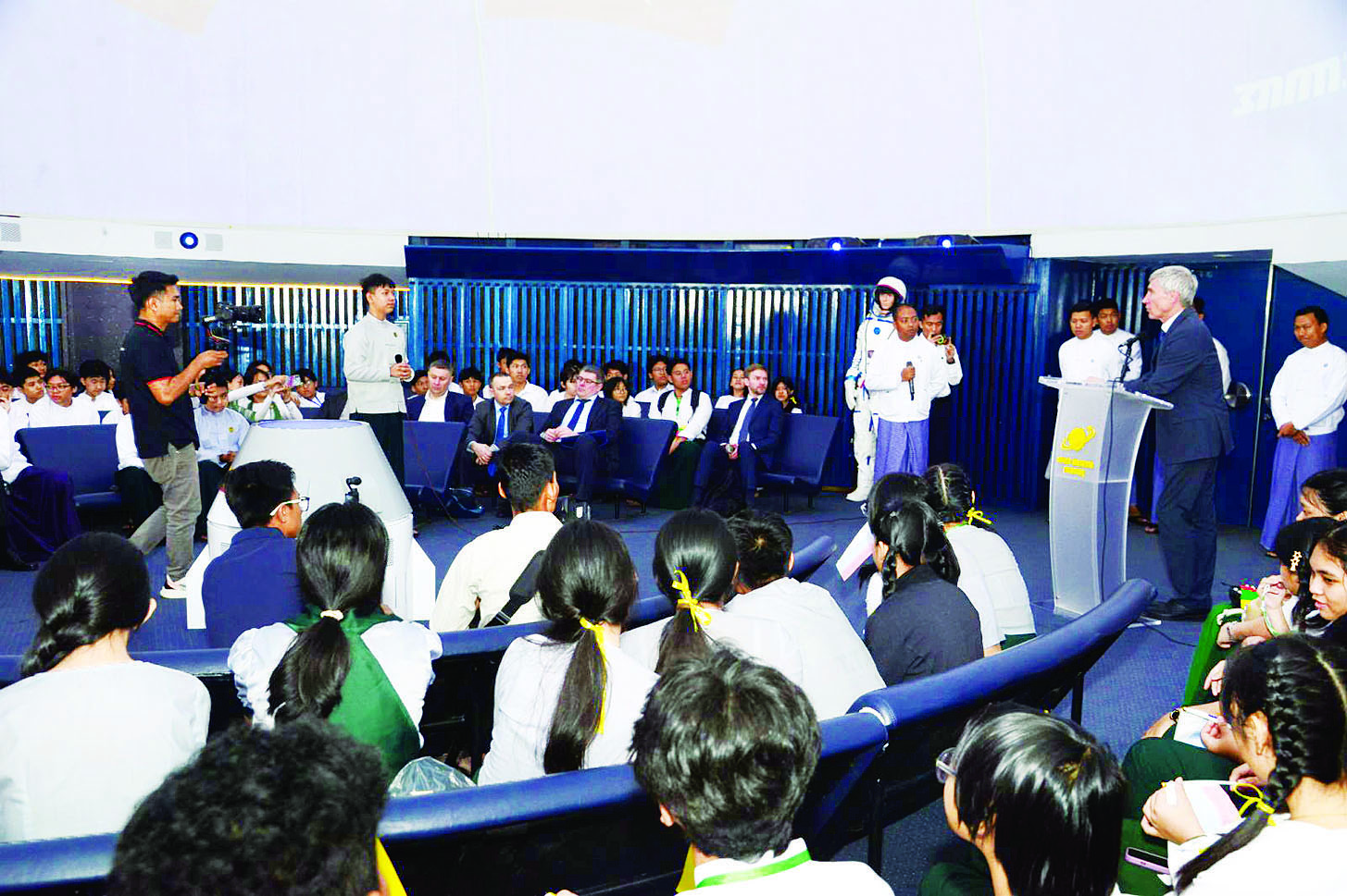 ထို့နောက် H.E.BAKANOV Dmitry Vladimirovich နှင့် အဖွဲ့သည် မြန်မာအာကာသအေဂျင်စီ (MSA) မှ တာဝန်ရှိသူများ လိုက်ပါ၍ ဒဂုံမြို့နယ်၊ အလုံလမ်းရှိ အာကာသပြတိုက်၌ လေ့ကျင့်ရေးအထက်တန်းကျောင်း (ကမာရွတ်မြို့နယ်) မှ အလယ်တန်း၊ အထက်တန်းကျောင်းသား၊ ကျောင်းသူများနှင့် တွေ့ဆုံ၍ H.E.BAKANOV Dmitry Vladimirovich က အာကာသနည်းပညာအကြောင်းကို ဟောပြောပို့ချခဲ့ပြီး ခရီးစဉ်တွင်လိုက်ပါလာသည့် ဆိုဗီယက်ပြည်ထောင်စုသူရဲကောင်းဘွဲ့နှင့် ရုရှားနိုင်ငံ၏ သူရဲကောင်းဘွဲ့ချီးမြှင့်ခြင်းခံရသူ အာကာသယာဉ်မှူး Mr. KRIKALEV Sergei Konstantinovich က အာကသသို့ ပျံသန်းခြင်းဆိုင်ရာ အတွေ့အကြုံများအား ရှင်းလင်းပြောကြားခဲ့ကြောင်း သတင်းရရှိသည်။