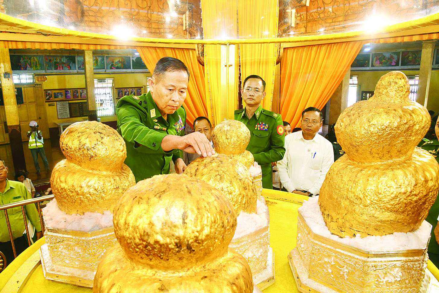 ထို့နောက် နိုင်ငံတော်လုံခြုံရေးနှင့် အေးချမ်းသာယာရေးကော်မရှင် ဒုတိယဥက္ကဋ္ဌ ဒုတိယတပ်မတော်ကာကွယ်ရေးဦးစီးချုပ် ကာကွယ်ရေးဦးစီးချုပ် (ကြည်း) နှင့် အဖွဲ့ဝင်များသည် ငလျင်ဒဏ်ကြောင့် ဘုရားရင်ပြင်တော်ရှိ နေပူခံကျောက်ပြားများ ကွဲအက်ပျက်စီးခြင်း၊ မုခ်ဦးများ၊ လှေကားများ၊ ကရဝိက်ဖောင်တော်ထားရှိရာ အဆောင်နှင့် အခြားသာသနိက အဆောက်အအုံများ ပြိုကျပျက်စီးနေခြင်းများကို ပြည်နယ်အင်ဂျင်နီယာများနှင့် အဖွဲ့များ၊ မြန်မာနိုင်ငံ အင်ဂျင်နီယာအသင်းမှ ပညာရှင်များက မူလလက်ရာ မပျက်ပြန်လည်ပြုပြင်ထားရှိမှုများ၊ အင်းလေးကန်ရေရှည်တည်တံ့ရေးနှင့် စိမ်းလန်းစိုပြည်စေရေးတို့အတွက် စက်ယန္တရားများဖြင့် စက်တပ်ရေယာဉ်ငယ်များ အန္တရာယ်ကင်းရှင်းစွာ မောင်းနှင်သွားလာနိုင်ရေး ရေလမ်းကြောင်းရှိ ဒိုက်ဖတ်များ၊ မှော်များ၊ အမှိုက်သရိုက်များ ရှင်းလင်းဆောင်ရွက်နေမှုများအား လိုက်လံကြည့်ရှုစစ်ဆေးပြီး လိုအပ်သည်များကို တာဝန်ရှိသူများနှင့် ပေါင်းစပ်ညှိနှိုင်းဆောင်ရွက်ပေးသည်။