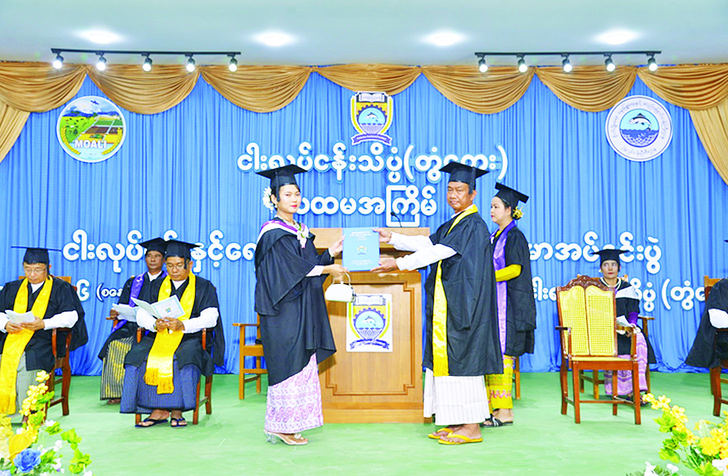 မွန်းလွဲပိုင်းတွင် ကျောင်းအုပ်ကြီးက ဒီပလိုမာအပ်နှင်းပွဲ ကျင်းပကြောင်းကြေညာပြီး ဒီပလိုမာအောင်လက်မှတ်ရရှိသူ ၃၈ ဦး၊ အဝေးရောက်ယူရန် လျှောက်ထားသူတစ်ဦး စုစုပေါင်း ၃၉ ဦးအား ဒီပလိုမာအောင်လက်မှတ်များ ချီးမြှင့်အပ်နှင်းကာ ဒီပလိုမာရရှိသူများ စာရင်းကို အတည်ပြုလက်မှတ်ရေးထိုးပေးသည်။