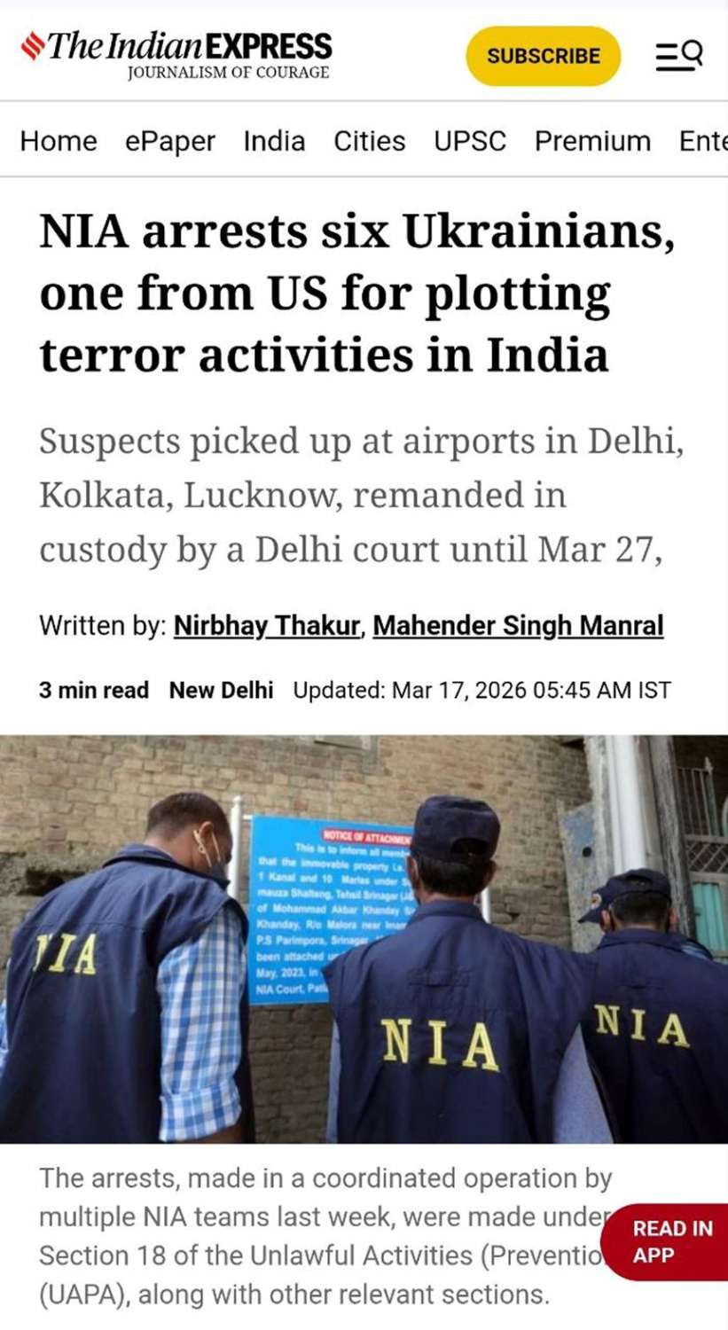 အဆိုပါ ဖမ်းဆီးထိန်းသိမ်းမှုတွင် ယူကရိန်းနိုင်ငံသား ၆ ဦးနှင့် အမေရိကန်နိုင်ငံသား တစ်ဦးတို့ပါဝင်ပြီး ဖမ်းဆီးမှုများကို Delhi ၊ Kolkata နှင့် Lucknow တို့ရှိ လေဆိပ်များတွင် ပြုလုပ်ခဲ့ခြင်းဖြစ်ကြောင်း သိရသည်။ စုံစမ်းစစ်ဆေးချက်များအရ အဆိုပါနိုင်ငံခြားသားများသည် အိန္ဒိယနိုင်ငံသို့ တရားဝင်ဗီဇာဖြင့် ဝင်ရောက်လာခြင်းဖြစ်သော်လည်း တားမြစ်နယ်မြေဖြစ်သည့် Mizoram ပြည်နယ်သို့ ခွင့်ပြုမိန့်မပါဘဲသွားရောက်ကာ ထိုမှတစ်ဆင့် မြန်မာနိုင်ငံဘက်သို့ ဖြတ်ကျော်ခဲ့ပြီး အိန္ဒိယနိုင်ငံကို ဆန့်ကျင်လျက်ရှိသည့် လက်နက်ကိုင်အဖွဲ့များနှင့် ဆက်သွယ်ခဲ့ကြောင်း၊ ဥရောပမှ ဒရုန်းများကို တင်သွင်းကာ လက်နက်ကိုင်အဖွဲ့များထံသို့ ပို့ဆောင်ပေးခဲ့ကြောင်းသိရှိရသည်။