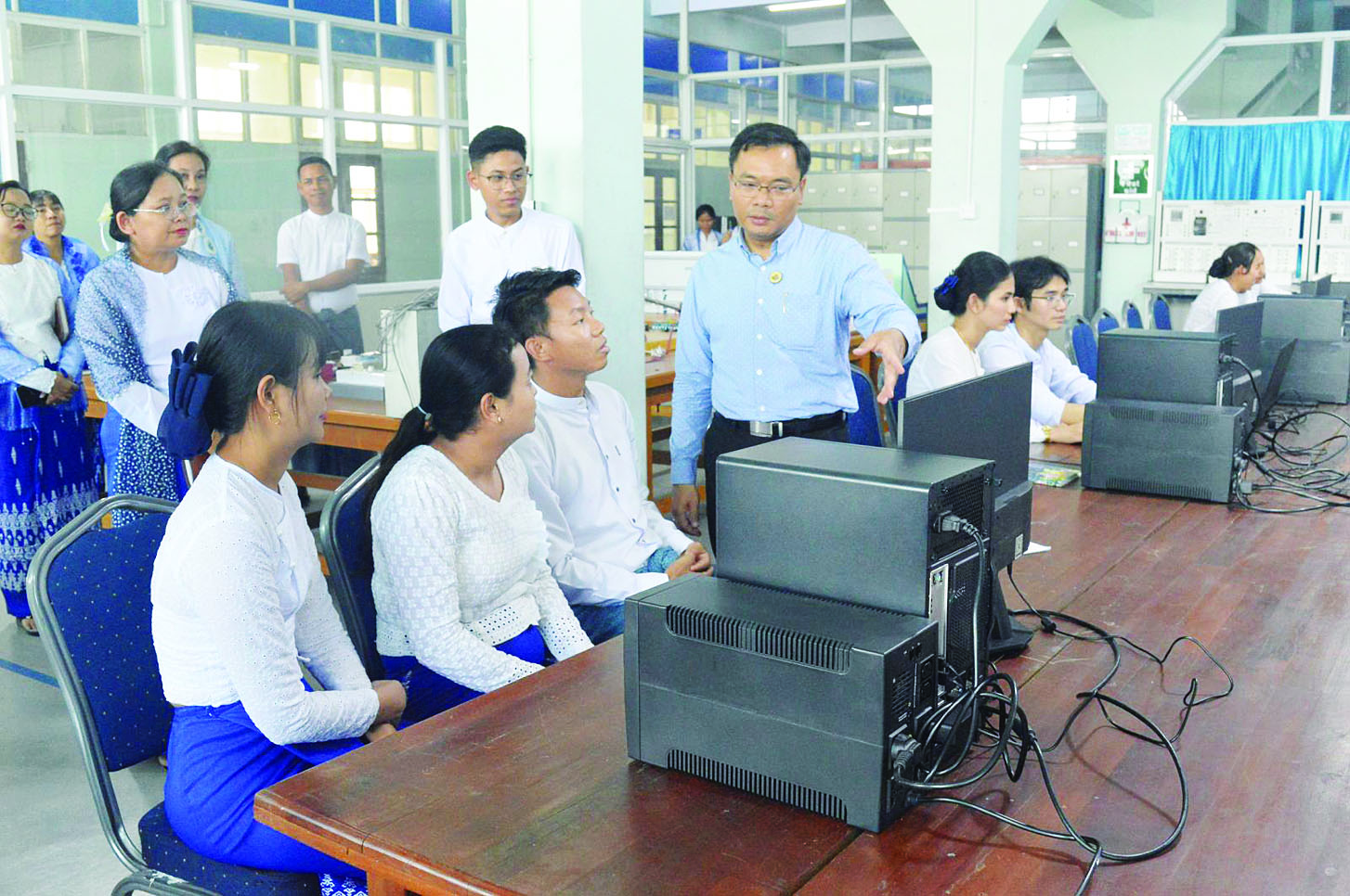 ယင်းနောက် ဒုတိယဝန်ကြီးသည် စာကြည့်တိုက်သို့ သွားရောက်ရာ မြေညီထပ်၌ထားရှိသော ၁၉၇၁ ခုနှစ်၌ တက္ကသိုလ်များ ကွန်ပျူတာဌာနကို တည်ထောင်သည်မှစ၍ ၁၉၇၂ ခုနှစ်တွင် အသုံးပြုခဲ့သော ပထမဆုံးသော Mainframe ကွန်ပျူတာ၊ ၁၉၇၃ ခုနှစ်၌ မြန်မာနိုင်ငံလူဦးရေ သန်းခေါင်စာရင်း ကောက်ယူရာတွင် အသုံးပြုခဲ့သည့် ကွန်ပျူတာနှင့် ဆက်စပ်ပစ္စည်းများ ခင်းကျင်းပြသထားမှုများကို လေ့လာကြည့်ရှုပြီး တန်ဖိုးရှိလှသောကွန်ပျူတာ ပစ္စည်းများဖြစ်၍ သက်ဆိုင်ရာခုနှစ်အလိုက် အမျိုးအစားနှင့် သုံးစွဲခဲ့ပုံတို့ကိုဖော်ပြလျက် အစီအစဉ်တကျထားရှိရန်၊ အဆိုပါပစ္စည်းများကို အခြေပြုလျက် ကွန်ပျူတာအသုံးပြုမှုများ ဖွံ့ဖြိုးတိုးတက်လာပုံ အချက်အလက်များကို စနစ်တကျပြုစု၍ ကျောင်းသားလူငယ်များသိရှိစေရေး ပြသထားရန်နှင့် ပြည်သူများ လေ့လာသိရှိနိုင်ရေးအတွက် တက္ကသိုလ် Website တွင်ပါ လွှင့်တင်ရေးဆောင်ရွက်သွားရန် မှာကြားကာ စာကြည့်တိုက်အတွင်း ပြင်ဆင်ထားရှိမှုအခြေအနေကို လှည့်လည်ကြည့်ရှုစစ်ဆေး၍ သုတ၊ ရသစာအုပ်များကို ပေးအပ်လှူဒါန်းသည်။
