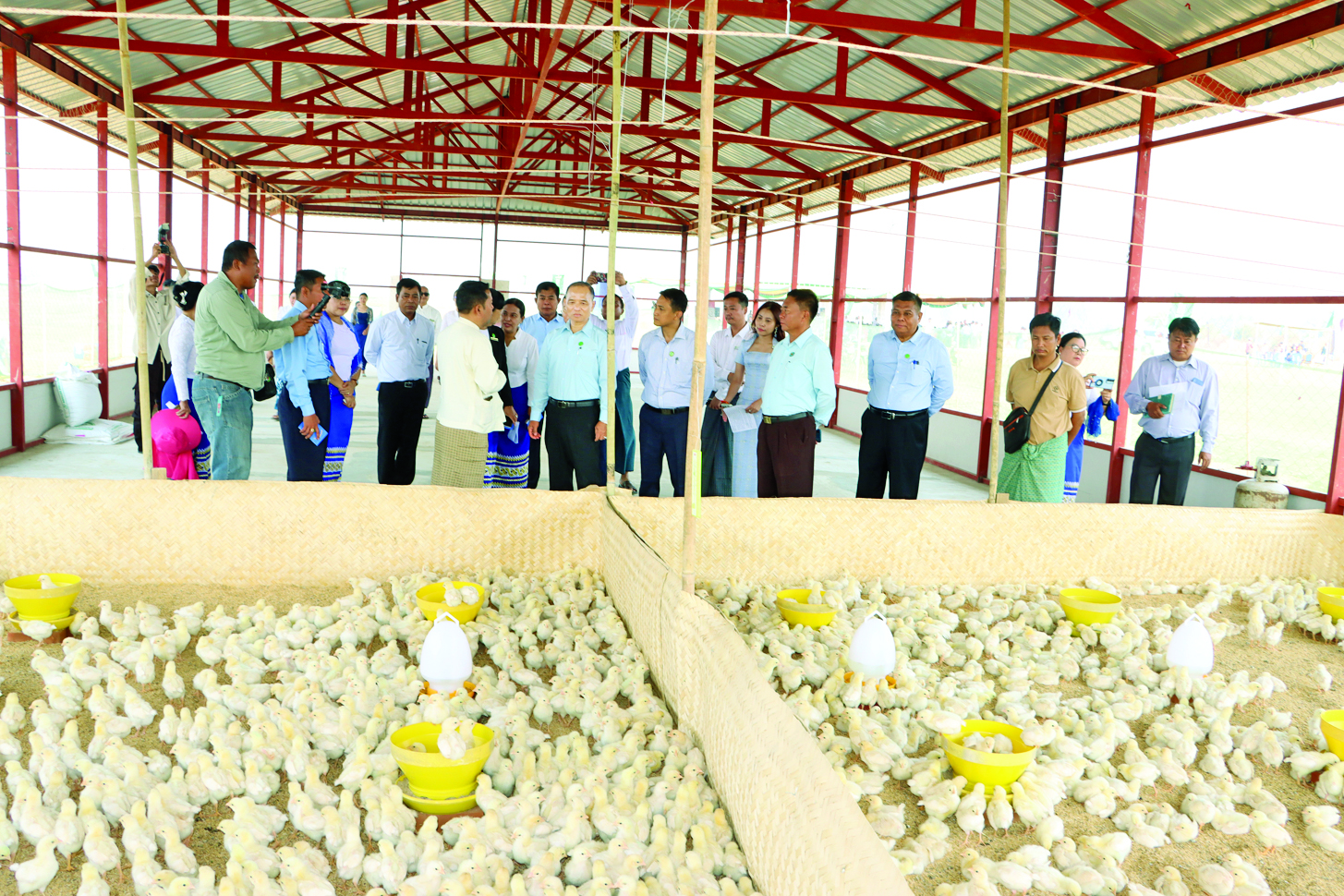 ဦးစွာ ဒုတိယဝန်ကြီးက မျိုးဇမ္ဗူသမဝါယမအသင်း၏ ခေတ်မီနည်းပညာသုံး မဟာနွယ် ဥစားကြက်မွေးမြူရေးခြံကို ဖဲကြိုးဖြတ်ဖွင့်လှစ်ပေးပြီး မွေးမြူရေးခြံများကို လှည့်လည်ကြည့်ရှုသည်။