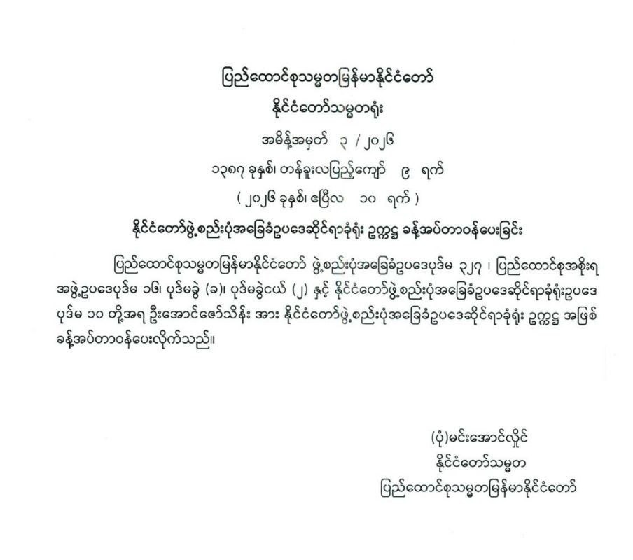 နိုင်ငံတော်အစိုးရ၏ ကြေညာချက်များ