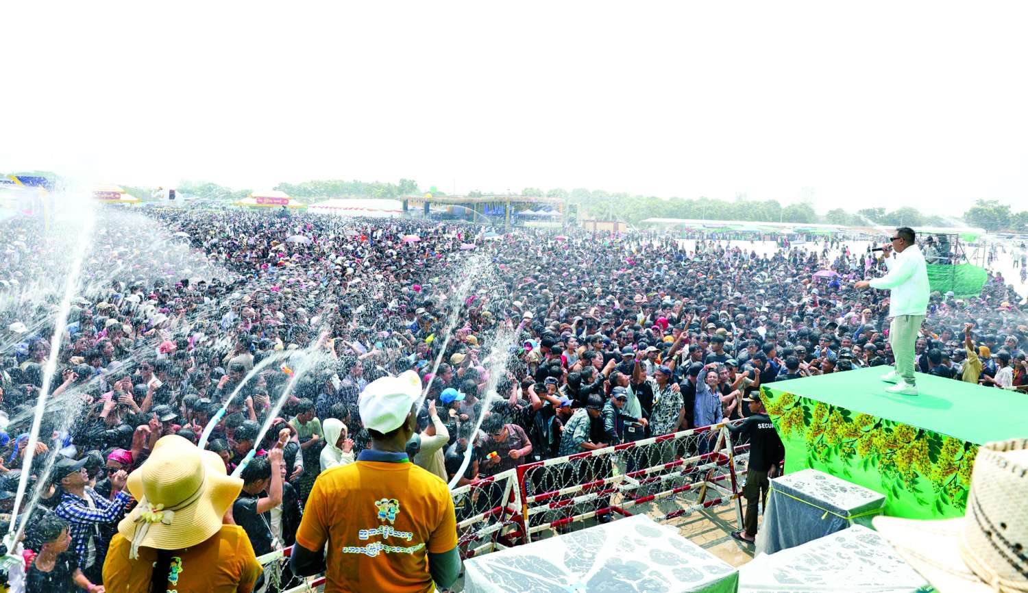 နေပြည်တော်လမ်းလျှောက်သင်္ကြန်သို့ လာရောက်လည်ပတ်ကြသည့် သင်္ကြန်ချစ်ပြည်သူများကို ရေကစားမဏ္ဍပ်များ၌ ပြည်တွင်းမှ နိုင်ငံကျော်အနုပညာရှင်များ၊ တေးသံရှင်များအပြင် ဘယ်လာရုစ်နိုင်ငံမှ အနုပညာရှင်များ၊ ကိုရီးယားနိုင်ငံ K-Pop အဆိုတော်များက DJ, Music Band များနှင့်တွဲဖက်၍ ပရိသတ်အကြိုက် တေးသီချင်းများဖြင့် မြိုင်မြိုင်ဆိုင်ဆိုင် သီဆိုကပြဖျော်ဖြေပေးကြပြီး သင်္ကြန်ချစ်ပြည်သူများက လိုက်ပါသီဆိုကခုန်ရင်း သင်္ကြန်အကျနေ့ကို ပျော်ရွှင်စွာ ဆင်နွှဲကြသည်။