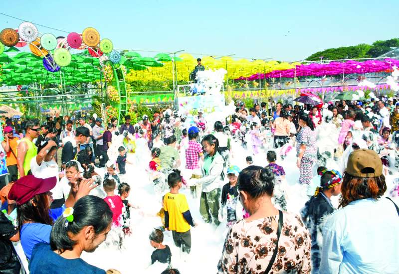 ထို့နောက် တိုင်းဒေသကြီးဝန်ကြီးချုပ်နှင့်ဇနီး၊ ဒုတိယဝန်ကြီးနှင့်ဇနီး၊ သံတမန်များနှင့် ဧည့်သည်တော်များသည် ပြည်သူ့ရင်ပြင် လမ်းလျှောက်သင်္ကြန်ပွဲတော်၌ သင်္ကြန်ချစ်သူ ပြည်သူများနှင့်အတူ ပျော်ရွှင်စွာရေကစားကြပြီး မြန်မာ့ရိုးရာသနပ်ခါးကို အပြန်အလှန် လိမ်းခြယ်ပေးကြသည်။