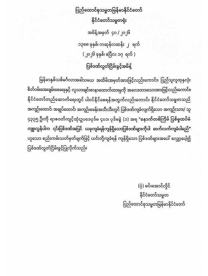 နိုင်ငံတော်အစိုးရ၏ ကြေညာချက်များ