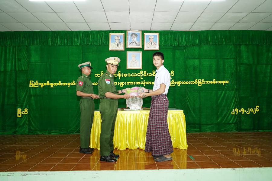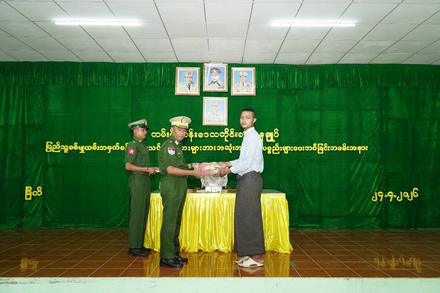 ဦးစွာ တိုင်းမှူးက အမှာစကားပြောကြားပြီး ပြည်သူ့စစ်မှုထမ်းသင်တန်း အမှတ်စဉ် (၂၄) သို့ တက်ရောက်ကြမည့် နိုင်ငံ့သားကောင်းရတနာများအတွက် အသုံးအဆောင်ပစ္စည်းများ ပေးအပ်သည်။ ထို့နောက် တိုင်းမှူးနှင့် တာဝန်ရှိသူများက နိုင်ငံ့သားကောင်းရတနာများအား ရင်းရင်းနှီးနှီး နှုတ်ဆက်အားပေးစကားပြောကြားပြီး လိုအပ်သည်များကို ပေါင်းစပ်ညှိနှိုင်းဆောင်ရွက်ပေးခဲ့ကြောင်း သတင်းရရှိသည်။