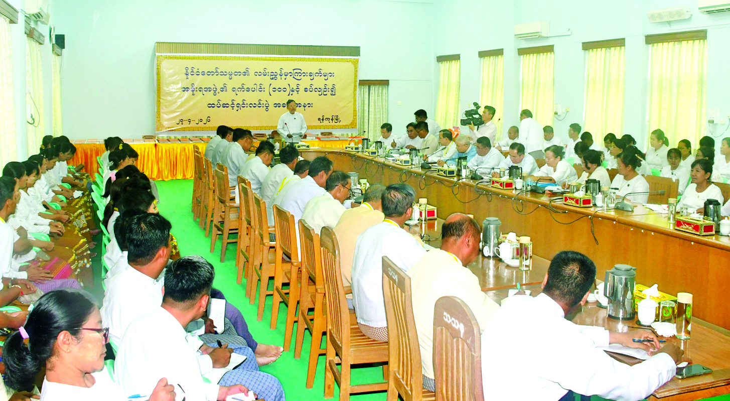 ဝန်ထမ်းများအနေဖြင့် နိုင်ငံတော်သမ္မတ၏ မိန့်ခွန်းတွင်ပါရှိသော လမ်းညွှန်မှာကြားချက်များကို လုပ်ငန်းလမ်းညွှန်များအဖြစ်ခံယူ၍ အလေးအနက်ထားဆောင်ရွက်ကြရမည်ဖြစ်ပါကြောင်း၊ အစိုးရ၏ရက် ၁၀၀ ကာလအတွင်း ဦးစားပေးဆောင်ရွက်သွားမည့် လုပ်ငန်းများနှင့် ရှေ့ဆက်လက်အကောင်အထည်ဖော်မည့် လုပ်ငန်းများ အောင်မြင်စွာ ဆောင်ရွက်နိုင်ရေးအတွက် မိမိတို့နိုင်ငံ့ဝန်ထမ်းများအနေဖြင့် ကျရာကဏ္ဍများမှနေ၍ လိုက်ပါဆောင်ရွက်ကြရမည်ဖြစ်ပါကြောင်း၊ သာသနာရေးဝန်ကြီးဌာနအနေဖြင့် နိုင်ငံတော်က အသိအမှတ်ပြုထားသည့် ဘာသာသာသနာများကို တတ်နိုင်သမျှကူညီစောင့်ရှောက်သွားမည်ဖြစ်ပြီး ဘာသာပေါင်းစုံချစ်ကြည်ညီညွတ်ရေးအဖွဲ့များ၏ အပြုသဘောဆောင်သော ဆောင်ရွက်မှုများအပေါ် အားပေးသွားမည်ဖြစ်ပါကြောင်း၊ သာသနာရေးဆိုင်ရာမှုခင်းများ လျော့နည်းကျဆင်းစေရေးအတွက် ဝိနည်းဓိုရ်သင်တန်းများ ဖွင့်လှစ်ရေး၊ အလုပ်ရုံဆွေးနွေးပွဲများ ကျင်းပရေး၊ တိုင်းဒေသကြီး/ပြည်နယ်များ၌သာမက မြို့နယ်များအားလုံးတွင် ဆောင်ရွက်သွားရမည်ဖြစ်ပါကြောင်း ပြောကြားခဲ့ကြောင်း သိရသည်။