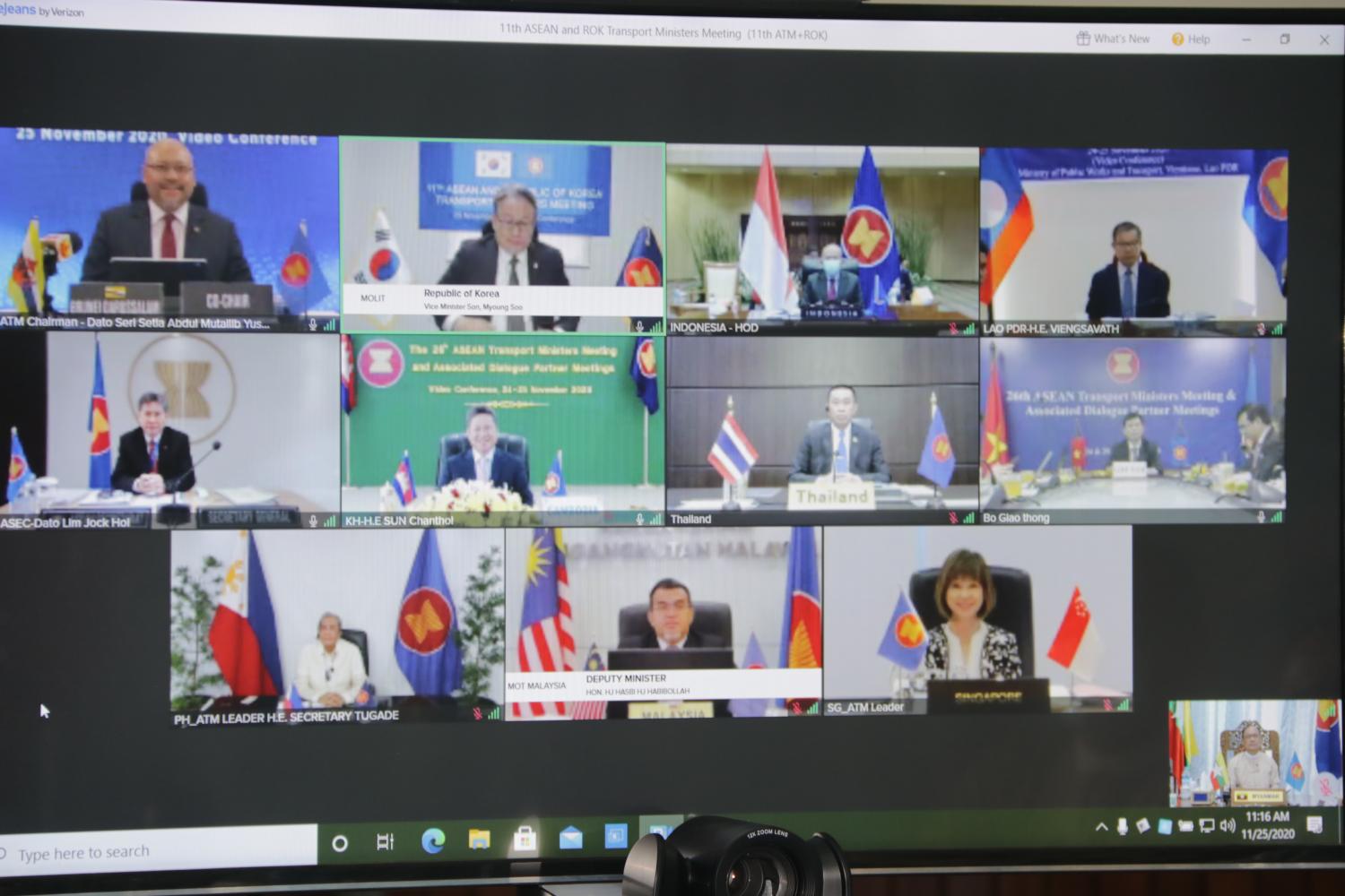 (၁၈) ကြိမ်မြောက် အာဆီယံ-ဂျပန် ပို့ဆောင်ရေးဝန်ကြီးများ အစည်းအဝေးနှင့် (၁၁) ကြိမ်မြောက် အာဆီယံ- ကိုရီးယား ပို့ဆောင်ရေးဝန်ကြီးများအစည်းအဝေးများကို ယနေ့နံနက် ပိုင်းတွင် ဗီဒီယိုကွန်ဖရင့် စနစ်ဖြင့် ကျင်းပသည်။