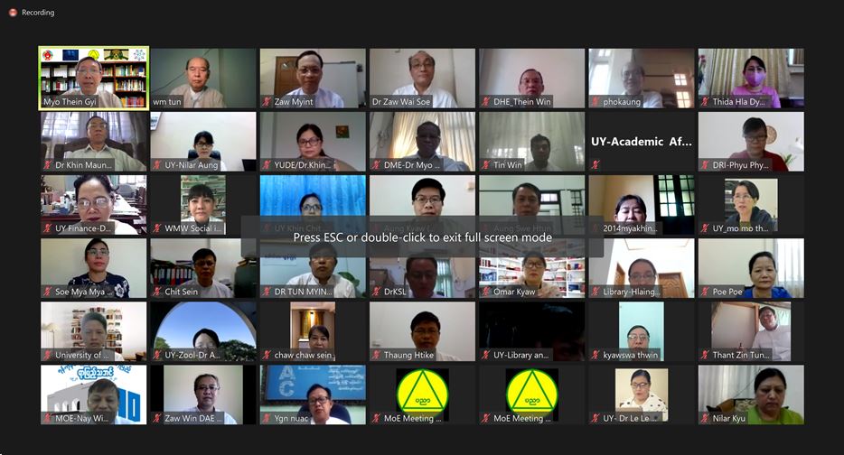 ရန်ကုန်တက္ကသိုလ် နှစ် ၁၀၀ ပြည့် အထိမ်းအမှတ် ရာပြည့်သဘင် အခမ်းအနားနှင့် စပ်လျဉ်း သည့် ညှိနှိုင်းအစည်းအဝေးကို ယနေ့ မွန်းလွဲ ၁ နာရီတွင် အွန်လိုင်းစနစ်ဖြင့် ကျင်းပသည်။
