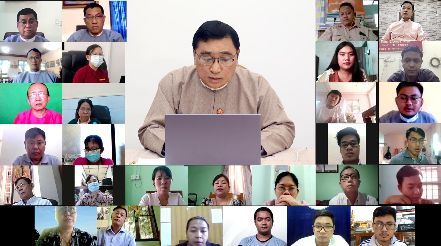 COVID-19 ရောဂါတုံ့ပြန်ဆောင်ရွက်ရာတွင် စေတနာ့၀န်ထမ်းများ ပိုမိုအားဖြည့် ပါ၀င် နိုင်ရေး အားပေးညှိနှိုင်း ဆွေးနွေးခြင်းကို ယနေ့ မွန်းလွဲပိုင်းတွင် Zoom Meeting ဖြင့် ကျင်းပသည်။