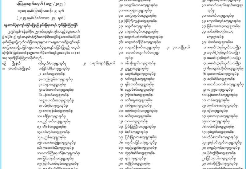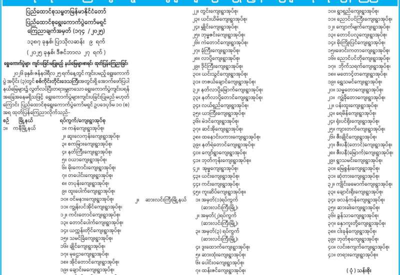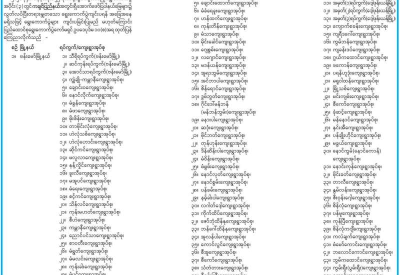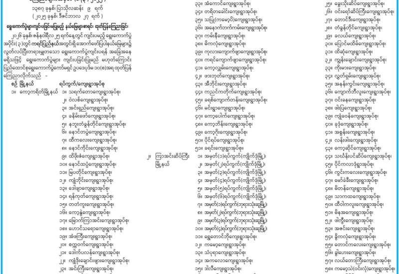 မန္တလေးတိုင်းဒေသကြီးအတွင်း ရွေးကောက်ပွဲများကျင်းပခြင်းမပြုမည့် နယ်မြေများစာရင်း ထုတ်ပြန်ကြေညာ