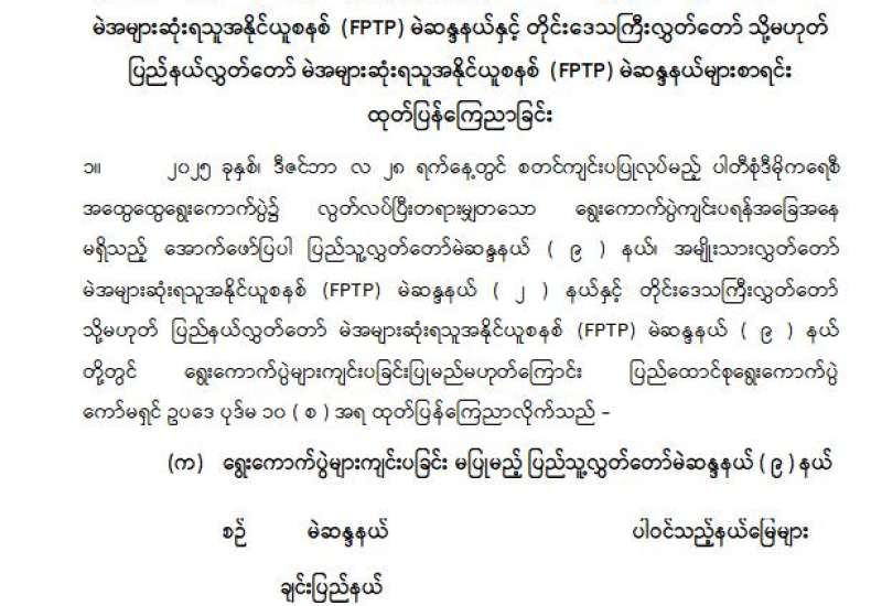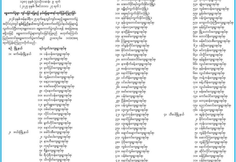 ရွေးကောက်ပွဲများကျင်းပခြင်းမပြုမည့် ပြည်သူ့လွှတ်တော်မဲဆန္ဒနယ်၊ အမျိုးသားလွှတ်တော်မဲအများဆုံးရသူ အနိုင်ယူစနစ် (FPTP) မဲဆန္ဒနယ်နှင့် တိုင်းဒေသကြီးလွှတ်တော် သို့မဟုတ် ပြည်နယ်လွှတ်တော် မဲအများဆုံးရသူ အနိုင်ယူစနစ်(FPTP) မဲဆန္ဒနယ်များစာရင်း ထုတ်ပြန်ကြေညာခြင်း