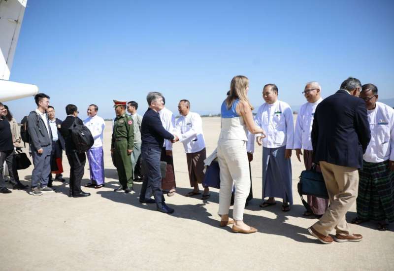 ၂၀၂၅ ခုနှစ် ဒီဇင်ဘာလ ၂၈ ရက်နေ့တွင် စတင်ကျင်းပပြုလုပ်မည့် ပါတီစုံဒီမိုကရေစီအထွေထွေရွေးကောက်ပွဲသို့ လာရောက်လေ့လာကြသည့် နိုင်ငံတကာရွေးကောက်ပွဲ စောင့်ကြည့်လေ့လာသူများသည် ယနေ့နံနက် ၁၁:၀၀ နာရီတွင် လေကြောင်းခရီးဖြင့် နေပြည်တော်သို့ရောက်ရှိလာရာ ပြည်ထောင်စုရွေးကောက်ပွဲကော်မရှင်အဖွဲ့ဝင် ဦးမျိုးလှိုင်၊ နေပြည်တော်ကောင်စီဝင်(၁) ဗိုလ်မှူးကြီး ရဲမိုး၊ ပြည်ထောင်စုနယ်မြေနှင့် ခရိုင်ရွေးကောက်ပွဲကော်မရှင်အဖွဲ့ခွဲ ဥက္ကဋ္ဌနှင့် အဖွဲ့ဝင်များ၊ ပြည်ထောင်စုရွေးကောက်ပွဲကော်မရှင်ရုံး တာဝန်ရှိသူများနှင့် ဌာနဆိုင်ရာတာဝန်ရှိသူများက နေပြည်တော်လေဆိပ်၌ ကြိုဆိုနှုတ်ဆက်ကြသည်။