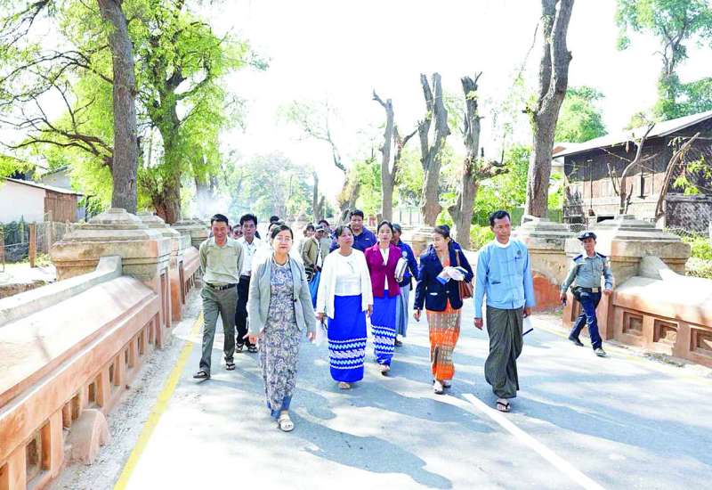 သာသနာရေးနှင့်ယဉ်ကျေးမှုဝန်ကြီးဌာန ဒုတိယဝန်ကြီး ဒေါ်နုမြဇံသည် ယမန်နေ့က ငလျင်ကြောင့် ထိခိုက်ပျက်စီးခဲ့သည့် မဟာမင်းထင်ကျောင်းကို ကြည့်ရှုစစ်ဆေးကာ ရှေးဟောင်းသစ်သား ဘုန်းတော်ကြီးကျောင်းဖြစ်ပြီး အနုလက်ရာများကျန်ရှိသည့် ကျောင်းဖြစ်သည့်အတွက် ပြုပြင်ထိန်းသိမ်းရေးဆောင်ရွက်ရာတွင် ကျွမ်းကျင်ပညာရှင်များဖြင့် စနစ်တကျဆောင်ရွက်ရန် မှာကြားသည်။