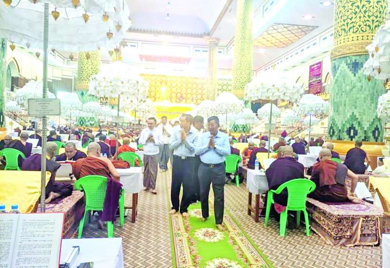 (၇၈)ကြိမ်မြောက် တိပိဋကဓရတိပိဋကကောဝိဒ ရွေးချယ်ရေးစာမေးပွဲကြီးကို ရန်ကုန်မြို့သီရိမင်္ဂလာကမ္ဘာအေးကုန်းမြေ မဟာပါသာဏလိုဏ်ဂူသိမ်တော်ကြီး၌ ကျင်းပလျက်ရှိရာ ယနေ့နံနက်တွင် စာမေးပွဲကျင်းပရာသို့ သာသနာရေးနှင့်ယဉ်ကျေးမှုဝန်ကြီးဌာန ပြည်ထောင်စုဝန်ကြီး ဦးတင်ဦးလွင်နှင့်ဇနီး၊ စွမ်းအင်ဝန်ကြီးဌာန ပြည်ထောင်စုဝန်ကြီး ဦးကိုကိုလွင်၊ စက်မှုဝန်ကြီးဌာန ပြည်ထောင်စုဝန်ကြီး ဒေါက်တာချာလီသန်း၊ သိပ္ပံနှင့်နည်းပညာဝန်ကြီးဌာန ပြည်ထောင်စုဝန်ကြီး ဒေါက်တာမျိုးသိန်းကျော်၊ ဆောက်လုပ်ရေးဝန်ကြီးဌာန ပြည်ထောင်စုဝန်ကြီးဦးမျိုးသန့်နှင့် တာဝန်ရှိသူများက လာရောက်ဖူးမြော် ကြည်ညိုကြသည်။