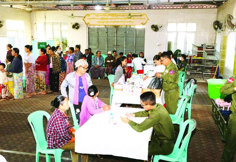 တပ်မတော်အနေဖြင့် ပြည်သူလူထု၏ ကျန်းမာရေးကဏ္ဍတိုးတက်မြင့်မားစေရန်အတွက် ကျန်းမာရေးစောင့်ရှောက်မှုလုပ်ငန်းများတွင် တစ်ဖက်တစ်လမ်းမှ ကူညီ စောင့်ရှောက်မှုများ ဆောင်ရွက် ပေးလျက်ရှိရာ ယနေ့နံနက်ပိုင်းတွင် ရန်ကုန်တိုင်းဒေသကြီး မှော်ဘီမြို့နယ် ဥသျှစ်ကုန်းကျေးရွာနှင့် ပတ်ဝန်းကျင်ကျေးရွာများရှိ သံဃာတော်များနှင့် ဒေသခံပြည်သူများအား ရန်ကုန်တိုင်းစစ်ဌာနချုပ် နယ်လှည့်ဆေးကုသရေးအဖွဲ့က အဆိုပါကျေးရွာရှိ အခြေခံပညာအထက်တန်းကျောင်း (ခွဲ) ၌ ကျန်းမာရေးစောင့်ရှောက်မှုလုပ်ငန်းများ ဆောင်ရွက်ပေးသည်။