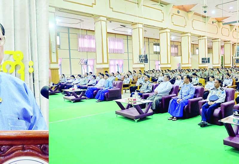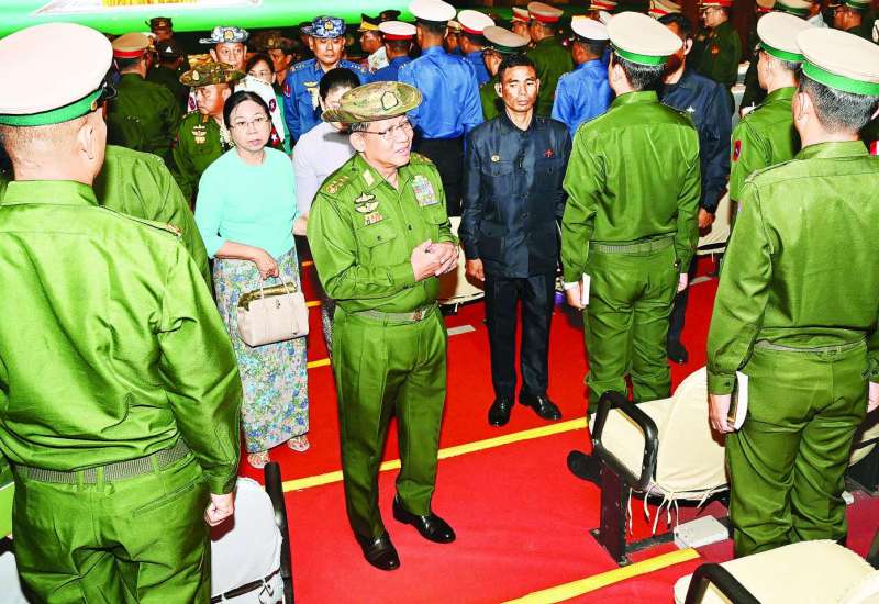 နိုင်ငံတော်လုံခြုံရေးနှင့်အေးချမ်းသာယာရေးကော်မရှင်ဥက္ကဋ္ဌ တပ်မတော်ကာကွယ်ရေးဦးစီးချုပ် ဗိုလ်ချုပ်မှူးကြီး မင်းအောင်လှိုင်သည် ယနေ့နံနက်ပိုင်းတွင် ရန်ကုန်တိုင်းစစ်ဌာနချုပ်ကွပ်ကဲမှုအောက် တပ်နယ်အသီးသီးမှ အရာရှိ၊ စစ်သည်၊ မိသားစုများအား တွေ့ဆုံအမှာစကားပြောကြားသည်။