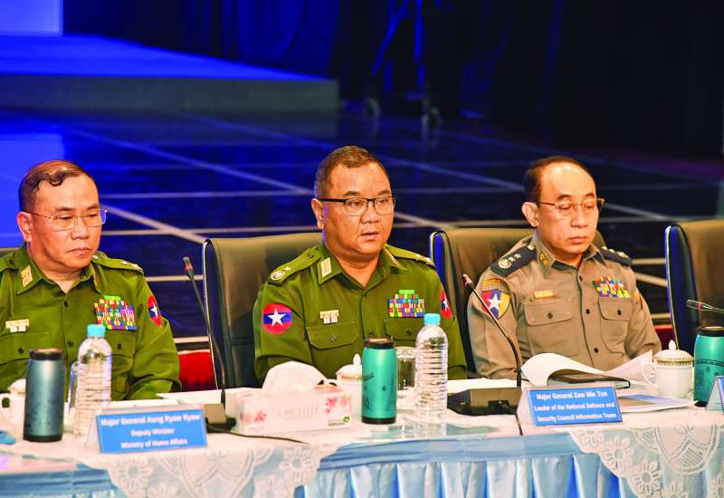 ပြည်ထောင်စုသမ္မတ မြန်မာနိုင်ငံတော်အစိုးရ၏ အမျိုးသားအဆင့် အွန်လိုင်းလိမ်လည်မှုအမြစ်ပြတ်နှိမ်နင်းရေးလုပ်ငန်းစဉ်များနှင့်ပတ်သက်၍ သတင်းစာရှင်းလင်းပွဲကို ယနေ့နံနက်ပိုင်းတွင် ရန်ကုန်တိုင်းဒေသကြီး ကမာရွတ်မြို့နယ် ပြည်လမ်းရှိ မြန်မာ့အသံနှင့်ရုပ်မြင်သံကြားအသံလွှင့်ဌာန၌ ကျင်းပပြုလုပ်ပြီး အမျိုးသားကာကွယ်ရေးနှင့်လုံခြုံရေးကောင်စီ သတင်းထုတ်ပြန်ရေးအဖွဲ့အဖွဲ့ခေါင်းဆောင် ပြန်ကြားရေးဝန်ကြီးဌာန ဒုတိယဝန်ကြီး ဗိုလ်ချုပ်ဇော်မင်းထွန်းနှင့် တာဝန်ရှိသူများက သတင်းမီဒီယာများ၏ သိရှိလိုသည့် မေးမြန်းမှုများကို ပြန်လည်ဖြေကြားသည်။