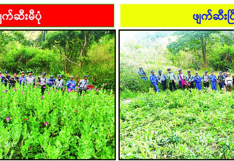 မြန်မာနိုင်ငံဖြင့် မူးယစ်ဆေးဝါးတိုက်ဖျက်ရေးလုပ်ငန်းစဉ်များကို ကုလသမဂ္ဂအပါအဝင် အိမ်နီးချင်းနိုင်ငံများ၊ အာဆီယံအဖွဲ့ဝင်နိုင်ငံများ၊ မဲခေါင်ဒေသတွင်းနိုင်ငံများ၊ ဘင်းမ်စတက်အဖွဲ့ဝင်နိုင်ငံများ၊ နိုင်ငံတကာမူးယစ်ဆေးဝါးထိန်းချုပ်ရေးဆိုင်ရာ အဖွဲ့အစည်းများနှင့် ပူးပေါင်း၍ ပိုမိုတိုးမြှင့်ဆောင်ရွက်လျက်ရှိသည့်အပြင် မူးယစ်ဆေးဝါးတိုက်ဖျက်ရေး လုပ်ငန်းစဉ်များတွင် တစ်ခုအပါအဝင်ဖြစ်သည့် ဘိန်းခင်းများ ဖျက်ဆီးမှုကိုလည်း ဆောင်ရွက်လျက်ရှိသည်။
