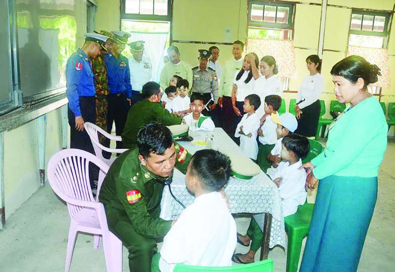 ဧရာဝတီမြစ်ကြောင်းတစ်လျှောက်ရှိ ဒေသခံပြည်သူများအား ကျန်းမာရေးစောင့်ရှောက်မှုလုပ်ငန်းများ ဆောင်ရွက်ပေးရန်အတွက် တပ်မတော်မြစ်တွင်းသွားဆေးရုံရေယာဉ် (ရွှေပုဇွန်)၊ မြစ်ရေယာဉ် (စကု) တို့နှင့်အတူ လိုက်ပါလာသည့် တပ်မတော်မှ ပါရဂူများ၊ ဆေးမှူးများ၊ သူနာပြုများ ပါဝင်သော တပ်မတော်နယ်လှည့်အထူးကုဆေးအဖွဲ့သည် ယနေ့မွန်းလွဲပိုင်းတွင် မော်လမြိုင်ကျွန်းမြို့နယ် ရွာသစ်ကျေးရွာသို့ ရောက်ရှိရာ ဌာနဆိုင်ရာ တာဝန်ရှိသူများ၊ ရပ်မိရပ်ဖများ၊ ဆရာ ဆရာမများနှင့် ကျောင်းသား ကျောင်းသူများက သောင်းသောင်းဖြဖြ ကြိုဆိုနှုတ်ဆက်ကြသည်။